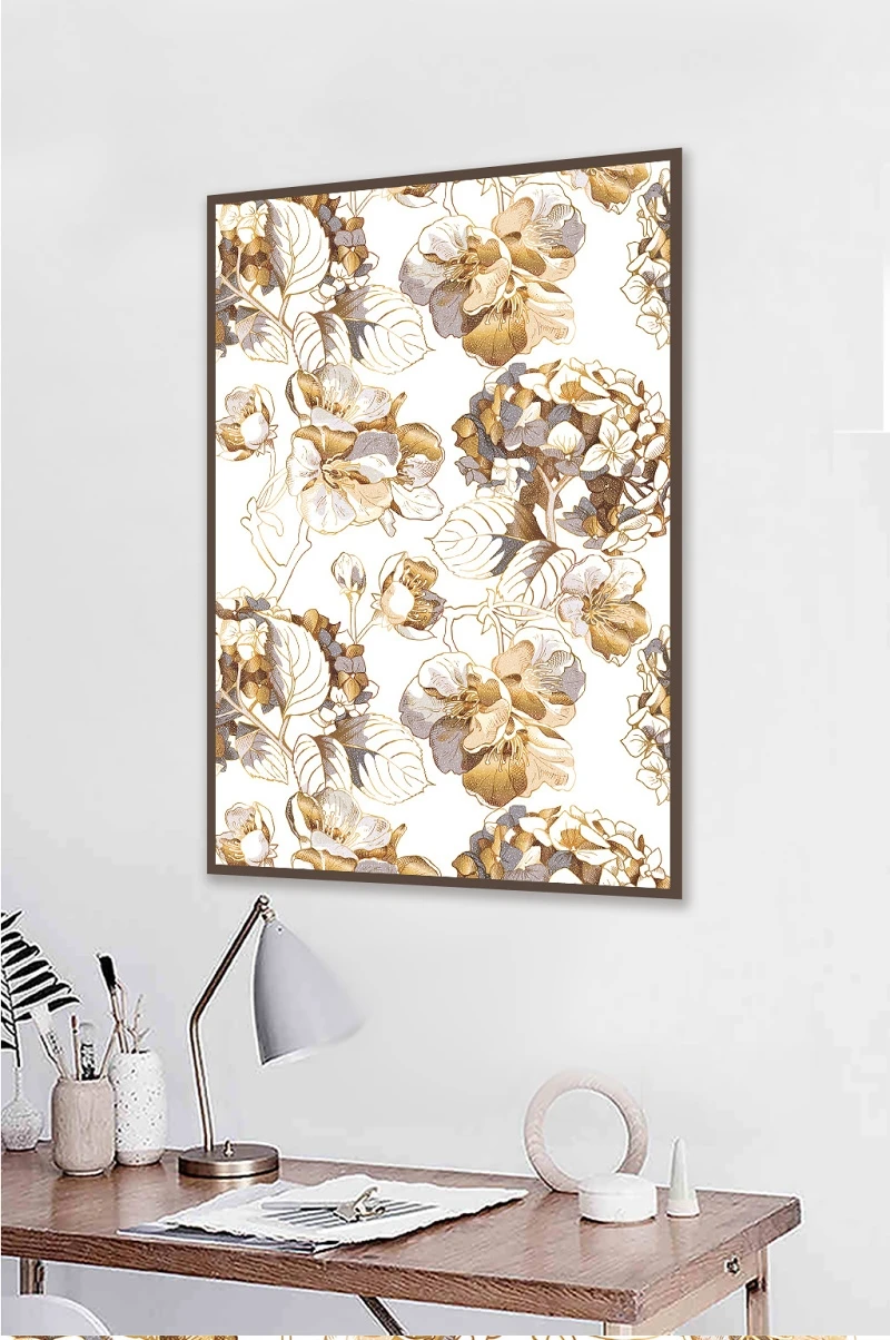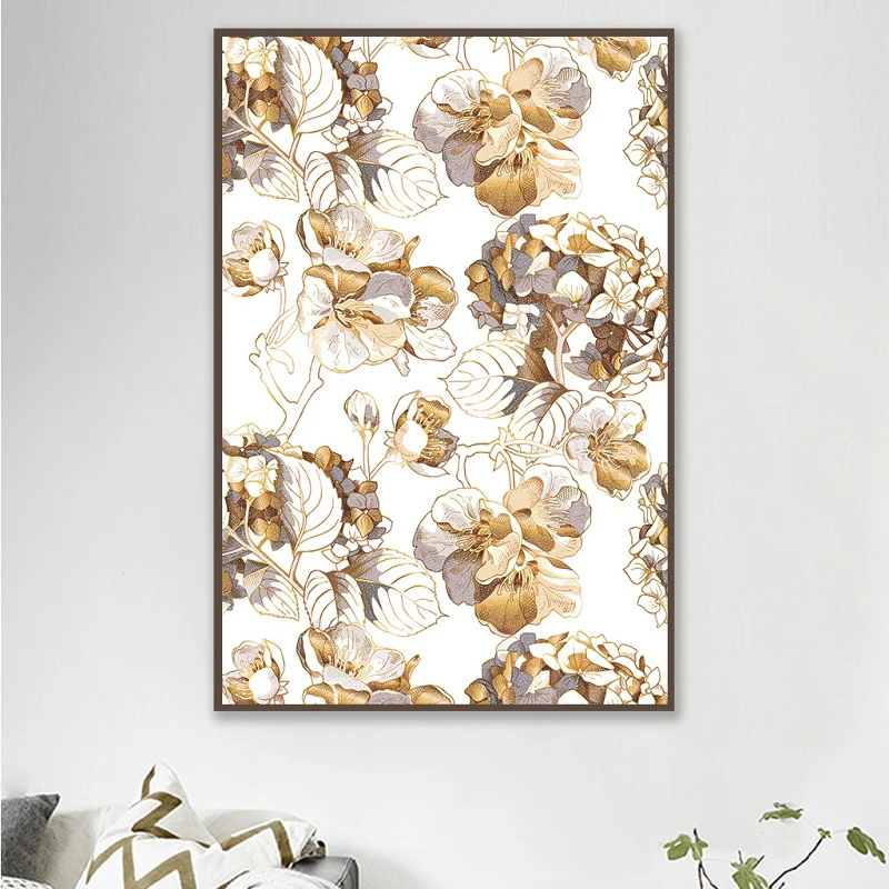 Картина с изображением растений, золотая линия, цветы, печать на холсте, Настенная картина для гостиной, домашняя Модульная картина 3-29