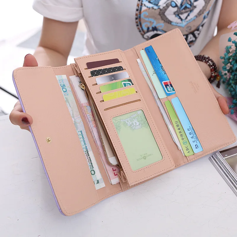 Новые женские кошельки, женские кошельки из искусственной кожи, модные длинные кошельки на застежке, Дамский портативный клатч, вместительная сумка для денег, держателей карт