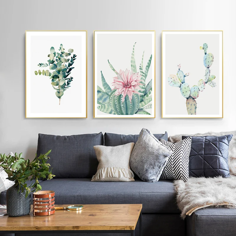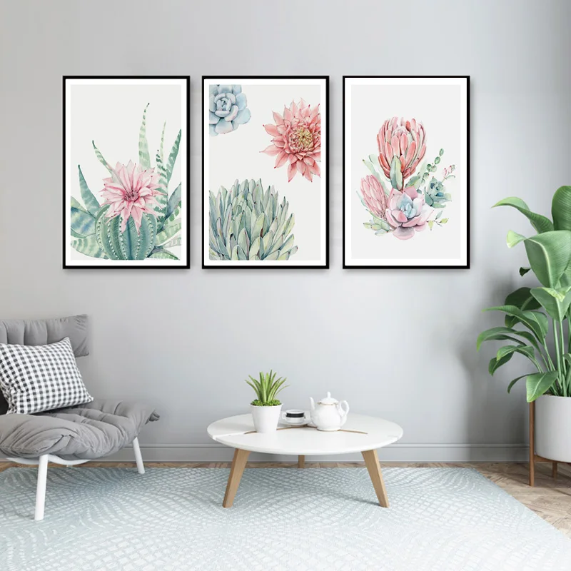 Скандинавские акварельные суккуленты, картины на холсте, ботаническ...