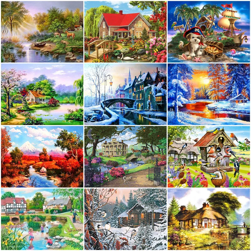 Набор для алмазной вышивки сделай сам, картина с изображением коттеджа, квадратная мозаика Стразы