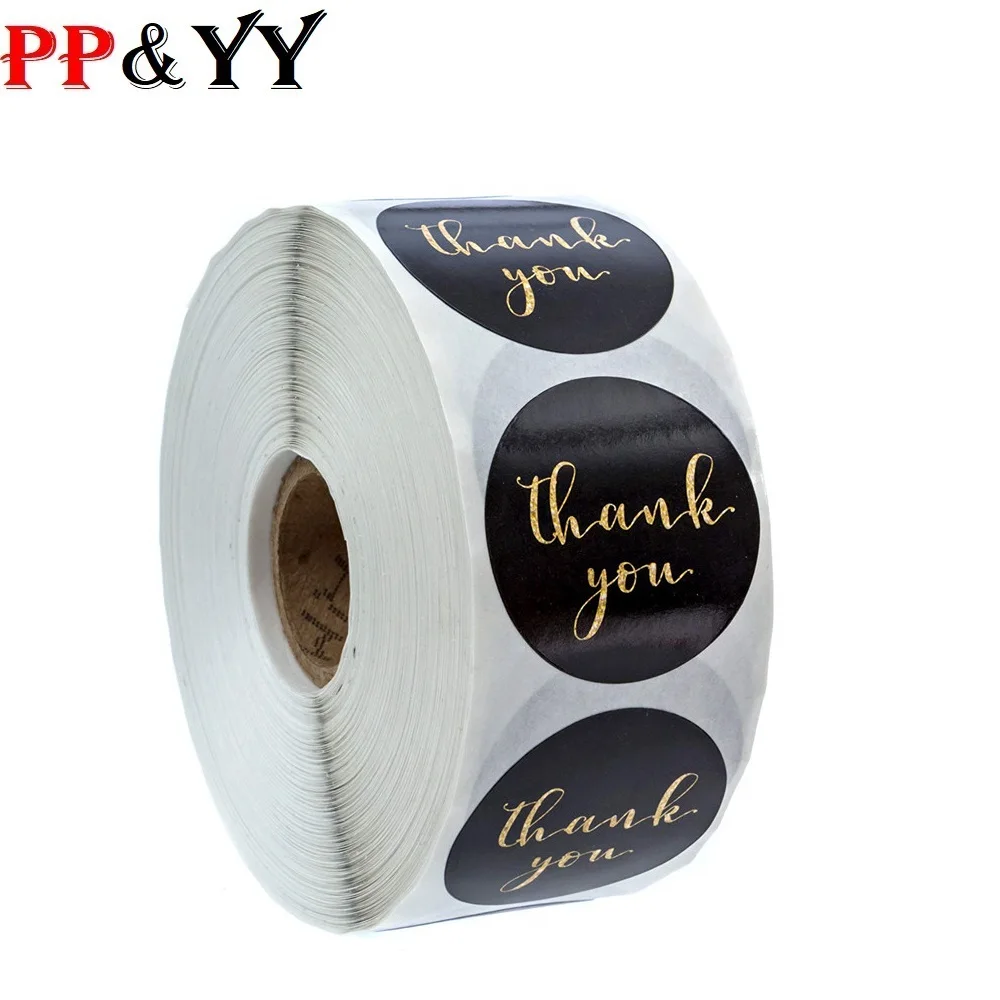 Наклейки с надписью Thank You, Золотая фольга, 1 дюйм, этикетки для печати, для подарочной упаковки, для дня рождения, Канцтовары, 100 шт.-500 шт.