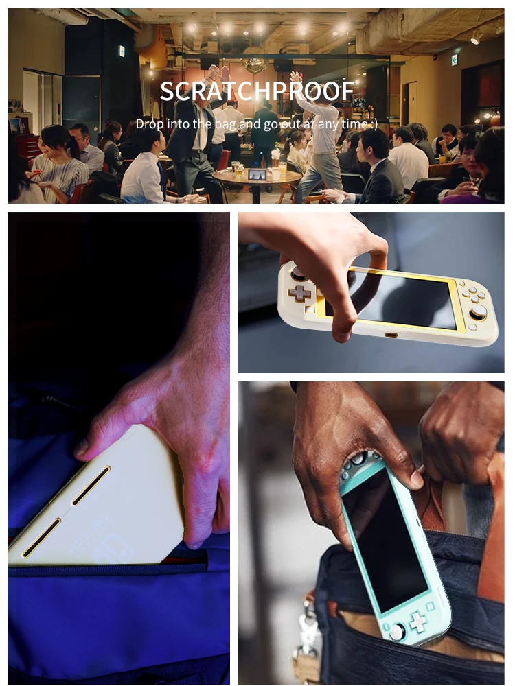 Силиконовый рукав изготовлен из силикона и все мягкие. Каждый может подумать о мягком материале, который может лучше защитить Nintendo lite, и детали идеальны. Когда на столе есть пятна или капли воды, бумажное полотенце можно протереть.