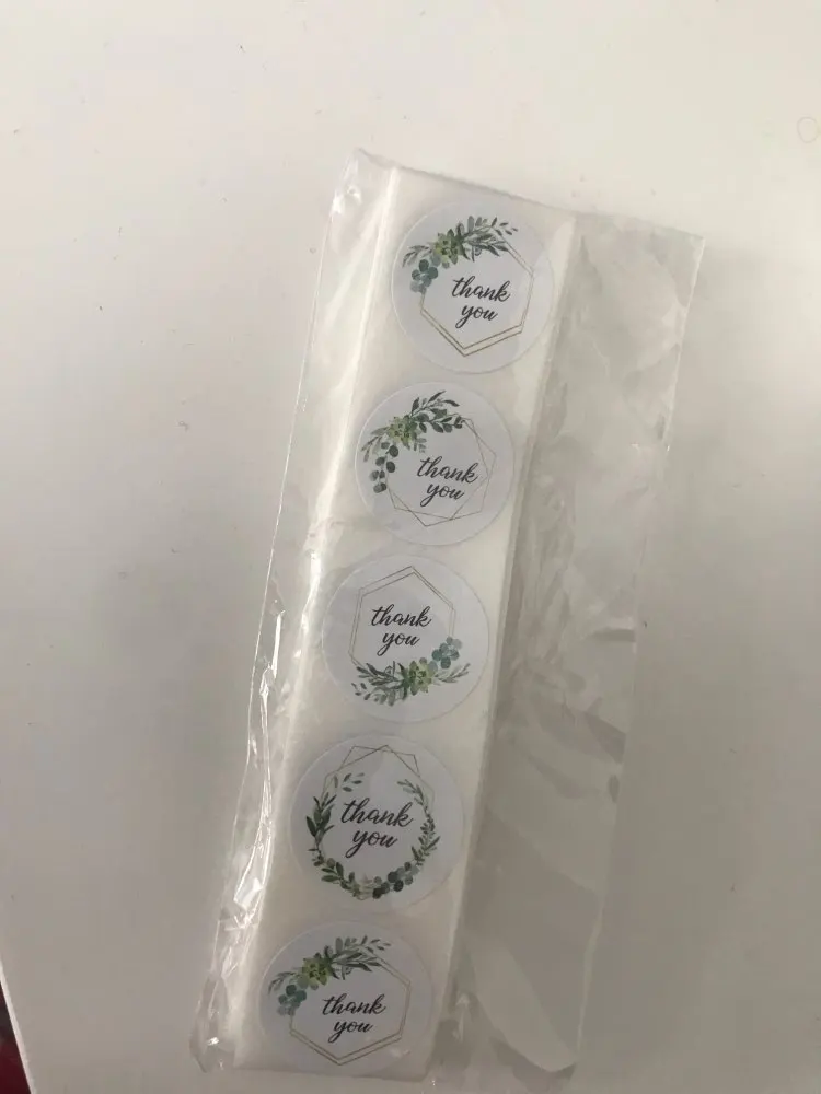заказ пришел за 10 дней. Пришли в одной посылке с 7ю другими. Не посмотрела на отзывы,а когда пришли-удивилась,они оказались маленькими,размером с 5р монету. Пришли не в ленте,как указано на фото продавца,а полосками. Все разные,что то же удивило,думала,что будут одного дизайна,ну да ладно,вроде не плохие,для упаковки подойдут