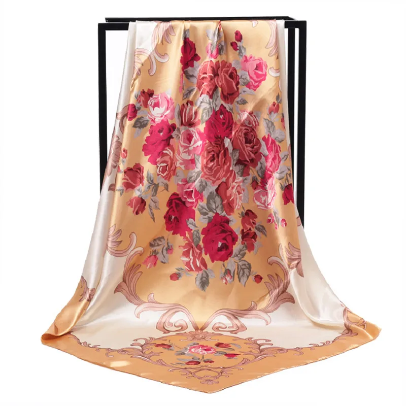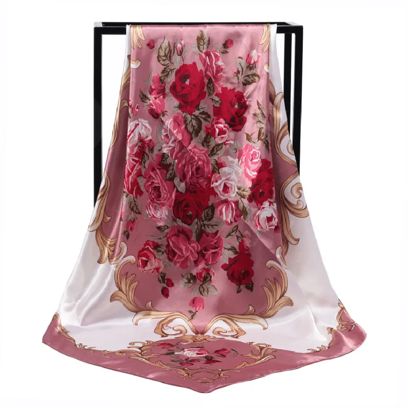 Платок женский Шелковый атласный, квадратный, 90 х90