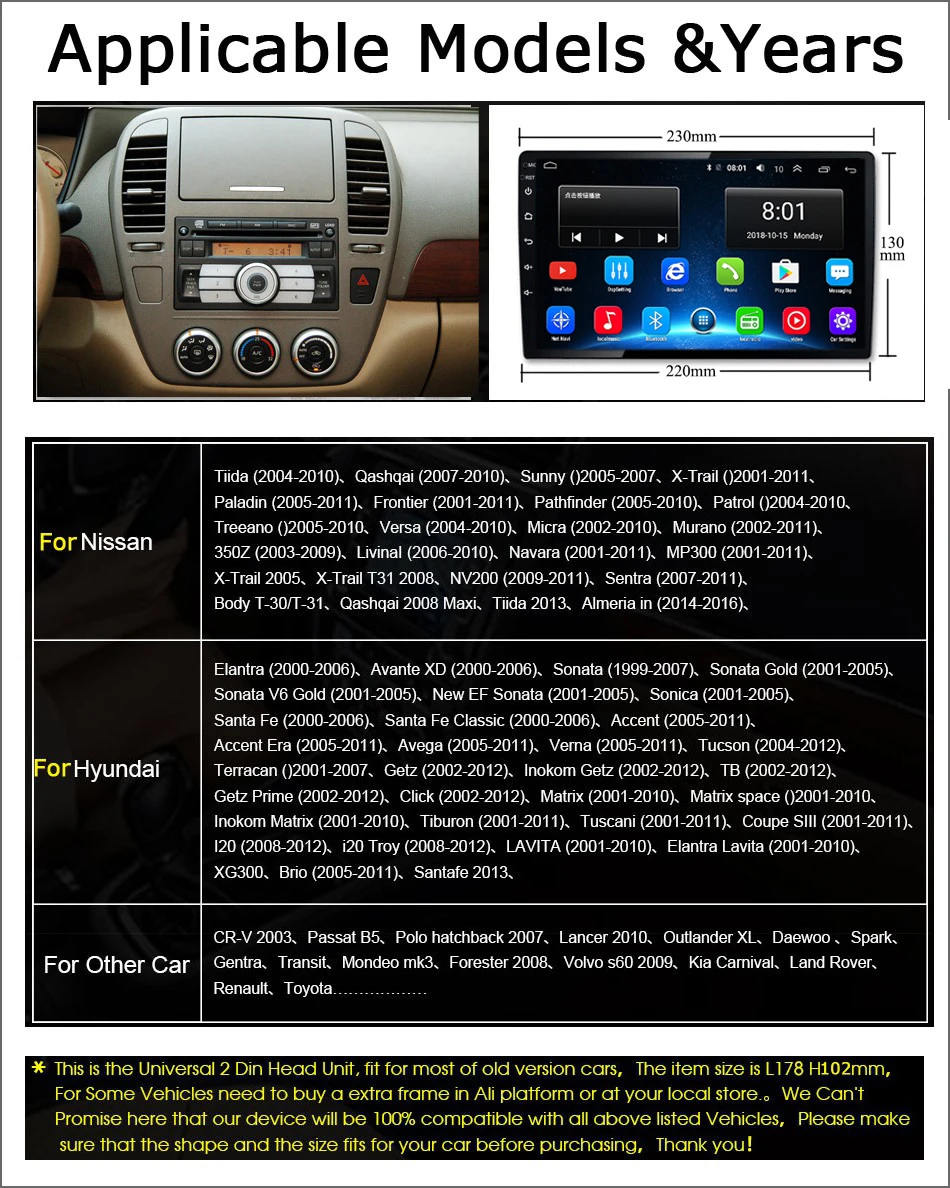 Размер Изделия2 din 250*145*mm