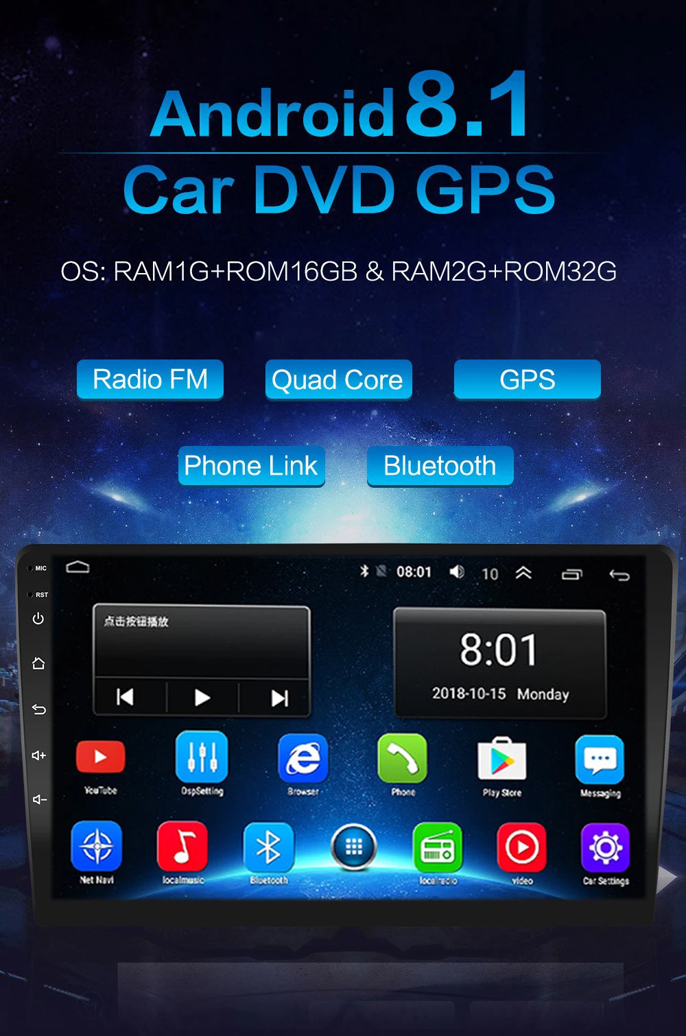 Vantagem:1. limpe o sistema operacional android, você pode instalar o programa de aplicativo, google play store, skype, facebook, youtube, twitter и т. д.2. tela capacitiva hd, tela multi-touch: 1024*600, Nao 800*4803. Процессор: четырехъядерный процессор cortexRam + rom: 1G + 16G 2G + 32GDesde que o sistema ocupa memória interna, o sistema operacional ocupa cerca de 4-6 gb de memória. Картан де инсталасао ливре4. suporte 1080 p + para Musica sem perdas5. Управление do volante do apoio (se você tem um carro)Pesquisando a agenda telefonica de bluetooth de a z6. Встроенные антенны Wi-Fi, você pode conectar pontos de acesso Wi-Fi nas proximidadesPor telefone como um hotspot para Wi-Fi.7. suporte Wi-Fi carro8. suporta mapas gps tais como google online mapyandex. Navi/waze on line/sygic...9. idioma com varios osd: chinês (simplificado), russo, espanhol, turco, russo, hebraico, italiano, chinês (tradicional) tailandês и т. Д. 48 idiomas