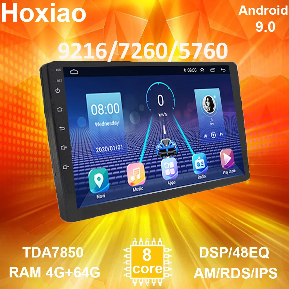 Мультимедийный плеер Hoxiao TDA7850, автомагнитола 2DIN, 9 дюймов, 10 дюймов, 9216, 7260, 5760, Android, Bluetooth, Wi-Fi, Mirrorlink, FM, DSP, RDS