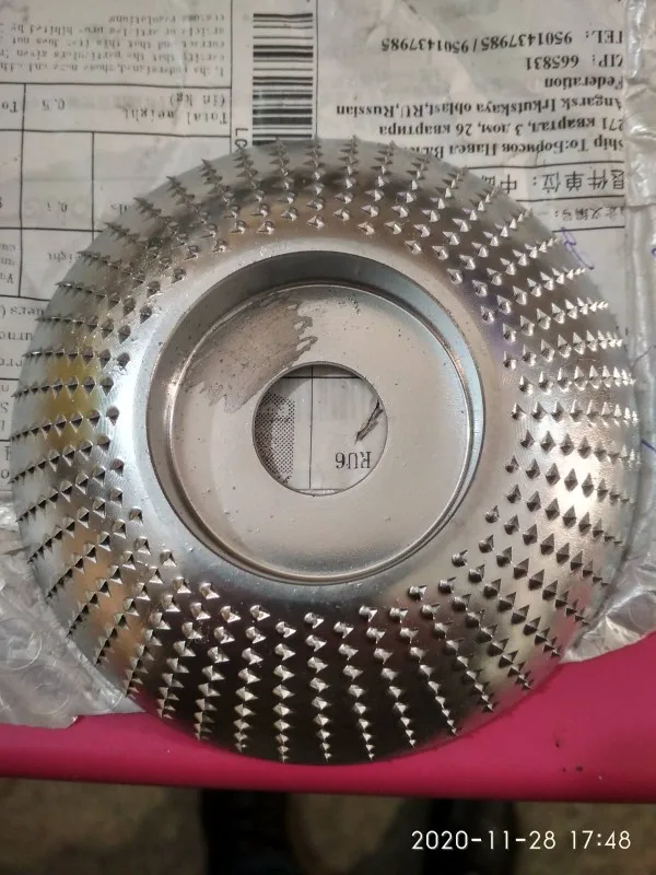 Быстрая доставка, меньше месяца. Это монолитные диски с теркой как у соковыжималки сверху. В диаметре 110 мм, это если замерять линейкой. буду пробовать ставить на более мощную болгарку. Деталь придётся зажимать в тисках. Попробую. Продавцу спасибо! С наступающим!