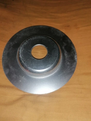 Покрыт какой-то гадостью (типа серебрянки) , которая сразу перепачкала руки. По весу тяжёлый, магнититься, видно, что из металла. На посадочную шайбу к моей Маките подошёл идеально. Резьба болгарки из углубления всех трёх разных кругов не торчит (как пишут о других производителях). Вещь отличная для обдирки дерева и краски (экономия на шкурке). Доволен.