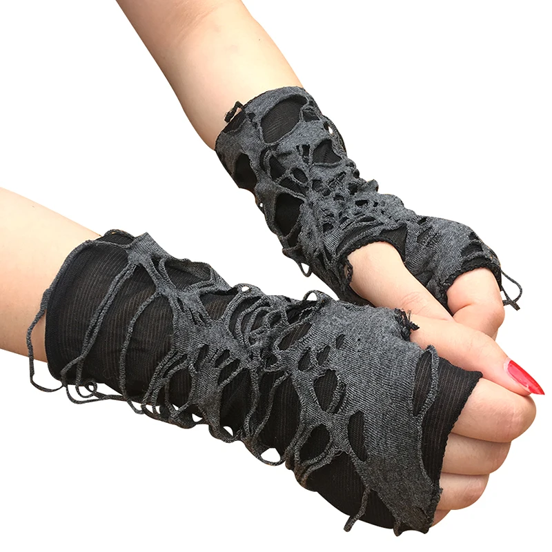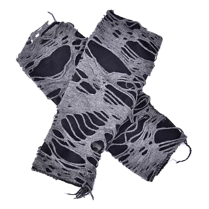 Черные перчатки без пальцев с рваными дырками, теплые манжеты в стиле готика, панк, Хэллоуина, косплея, вечеринки, платья, аксессуары, 1 пара