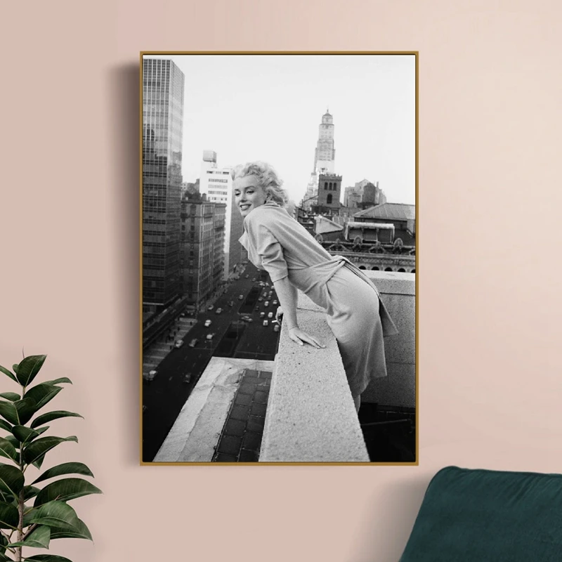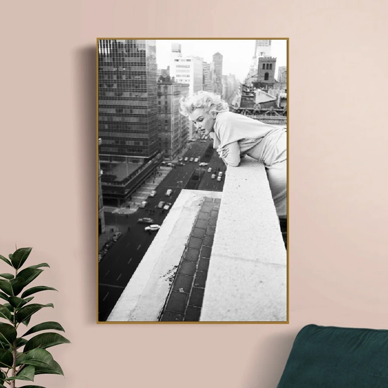 Черно-белый винтажный холщовый постер Монро на балконе отеля посола в Нью-Йорке художественная картина