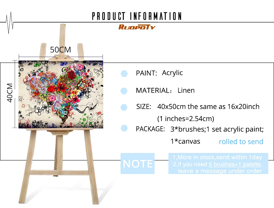 RUOPOTY diy живопись по номерам, Акриловая Краска на холсте, соврем...