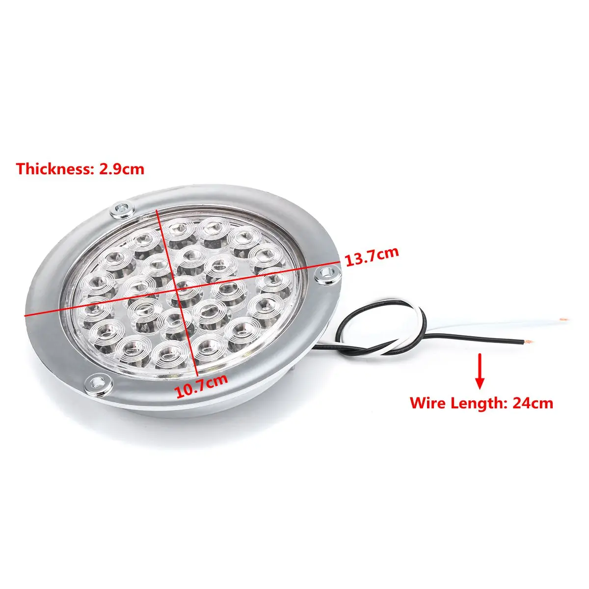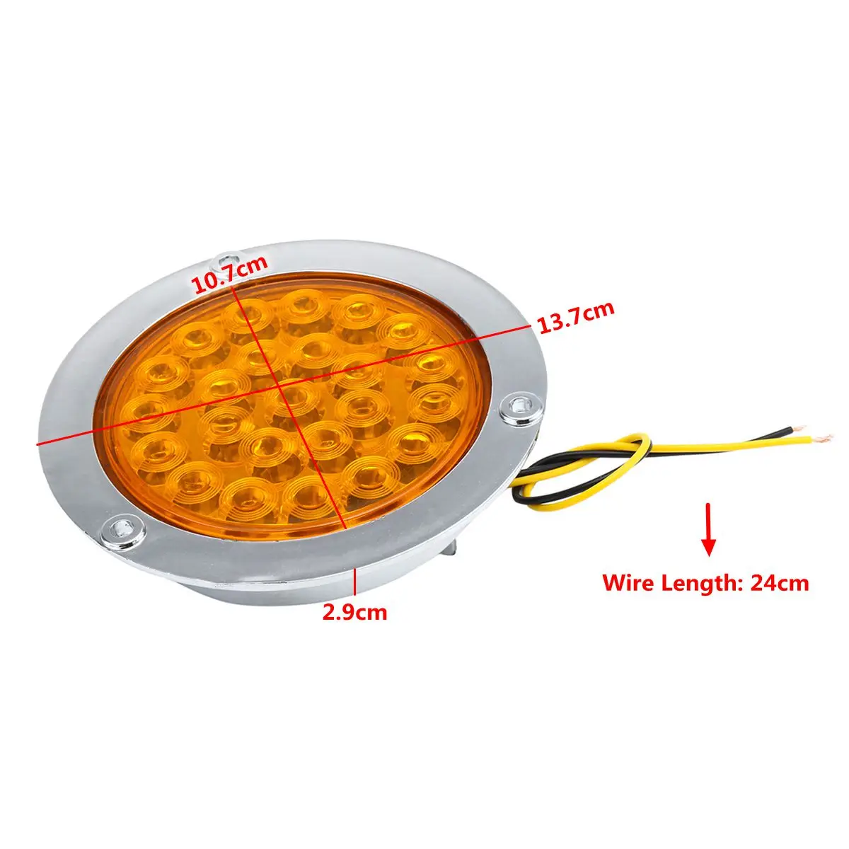 Задсветильник для автомобилей/грузовиков/прицепов/лодок/автобусов, 24 светодиода, 10-30 вОсобенность:1. Новый 24 светодиода указатель поворота/стоп-сигнал заднего фонаря/фонарь заднего хода.2. Длительный срок службы.3. Ударопрочный, водонепроницаемый, устойчивый к вибрациям и пыли.4. Большая лампа гарантирует, что ваш автомобиль будет виден.5. Подходит для легковых автомобилей, грузовиков, прицепов, лодок, автобусов.6. Красный используется как стосветильник, когда янтарь поворачивается сигнальный индикатор, а белый-фонарь заднего хода.Спецификация:-Тип: светодиодный задсветильник-Размещение на транспортном средстве: сзади-Количество светодиодов: 24-Цвет: красный, янтарный, белый-Форма: круглая-Материал: сплав и поликарбонат-Напряжение: 10-30 в-Внешний диаметр: 13,7 см-Внутренний диаметр: 10,7 см-Длина провода: 24 смПосылка входит:1x24 светодиода
