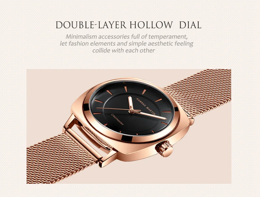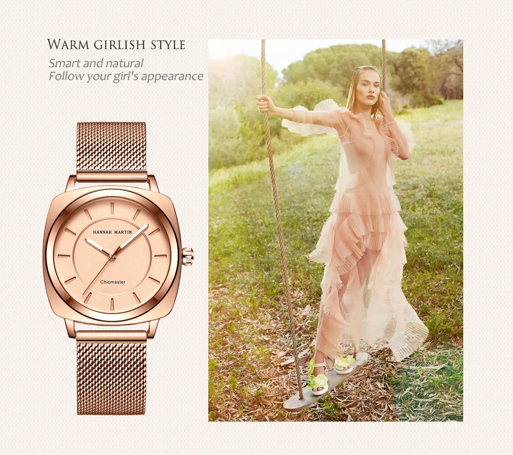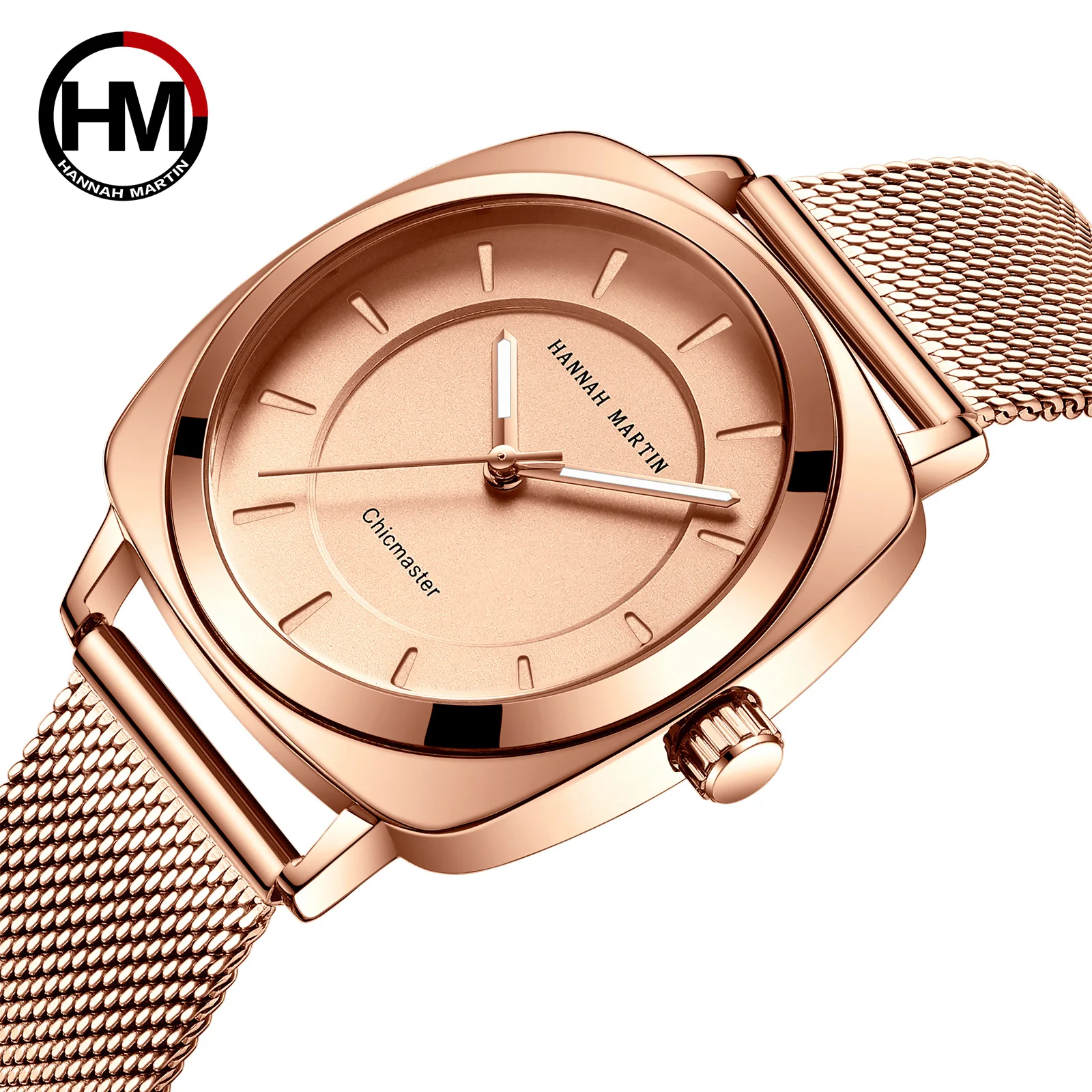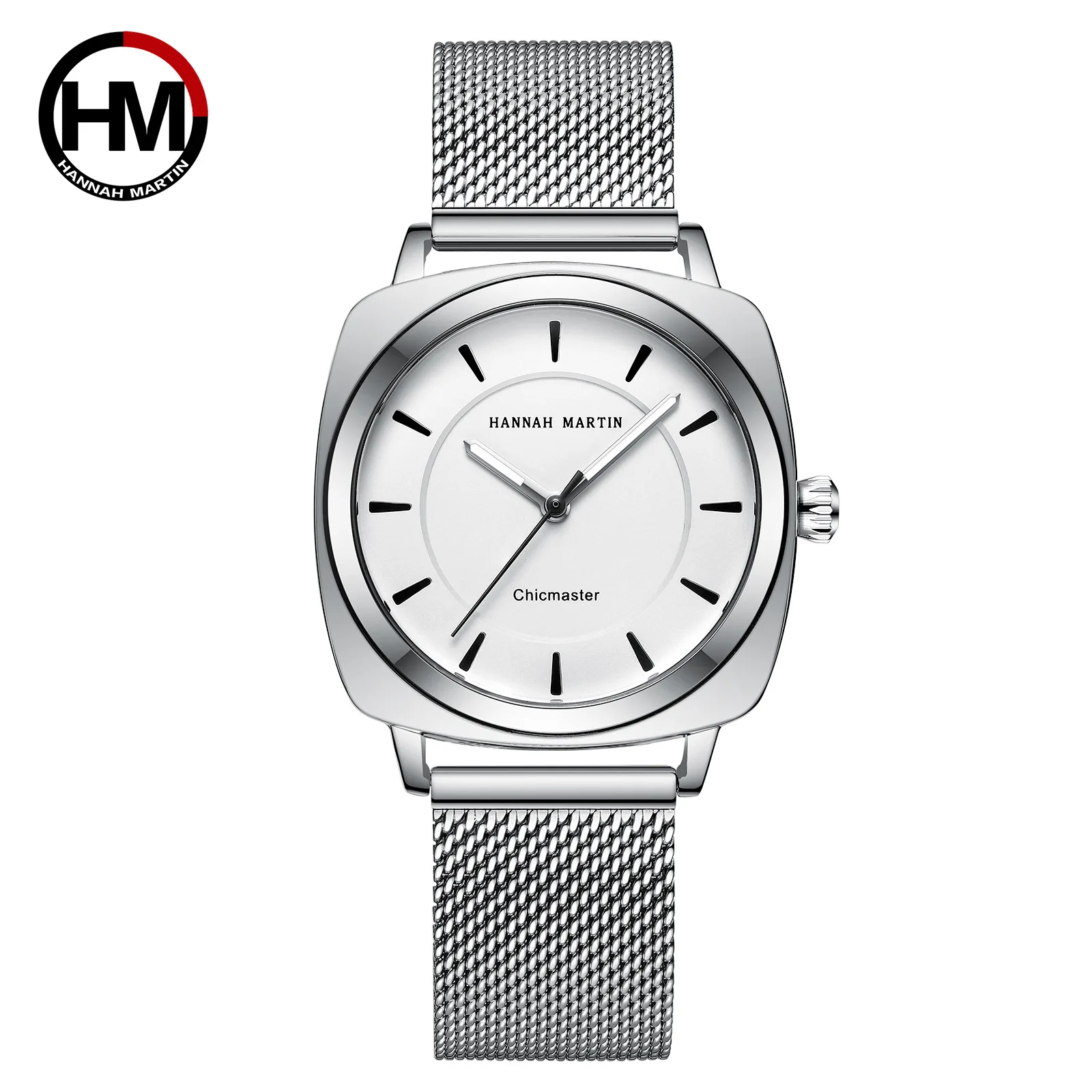 Часы Hannah Martin женские наручные, брендовые Роскошные водонепроницаемые с японским механизмом, с квадратным циферблатом