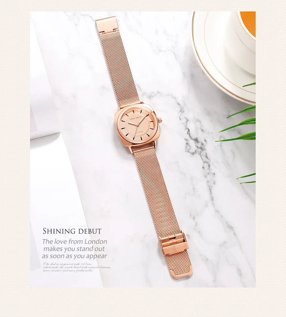 Ханна Martin дамские часы Японский часовой механизм квадратный Роск...