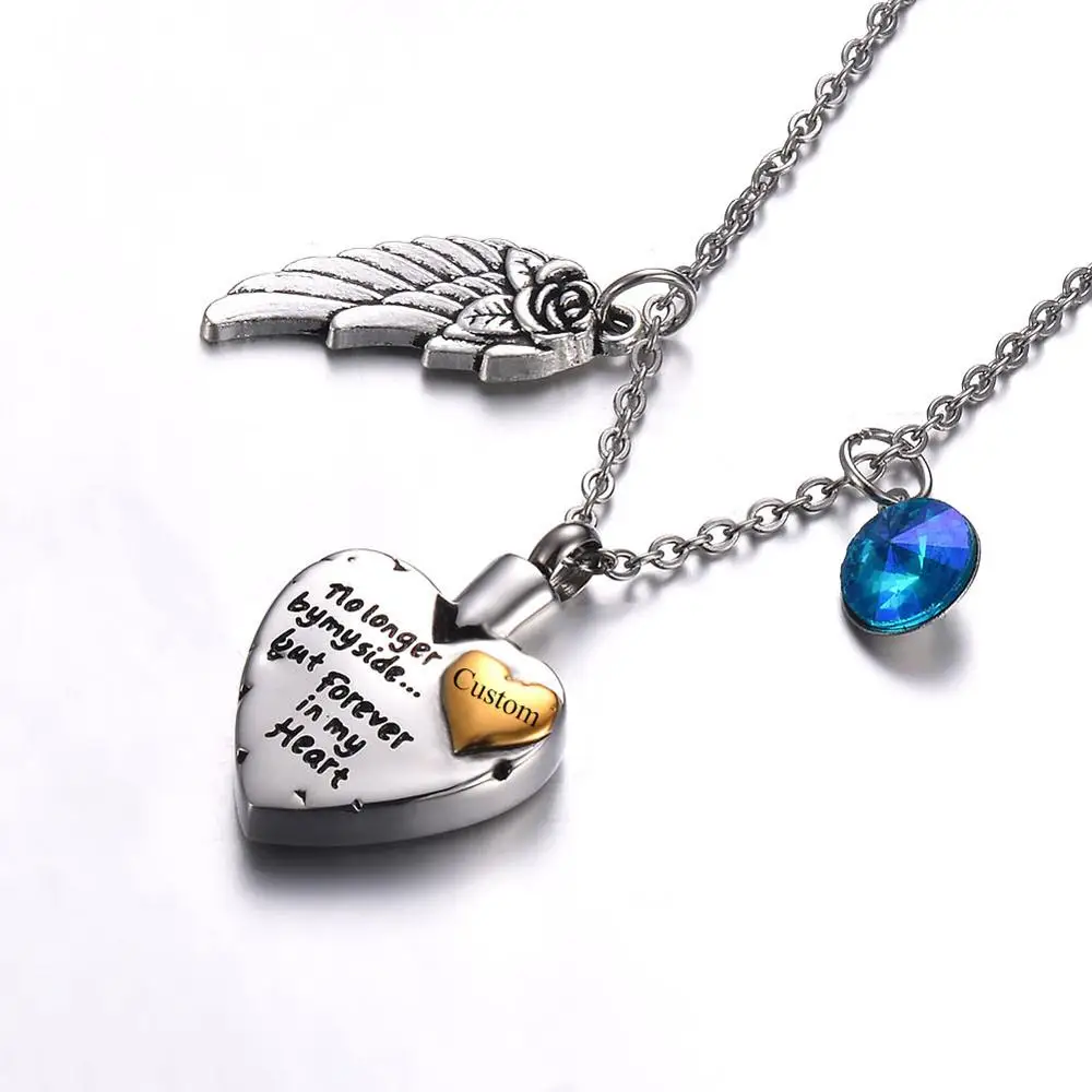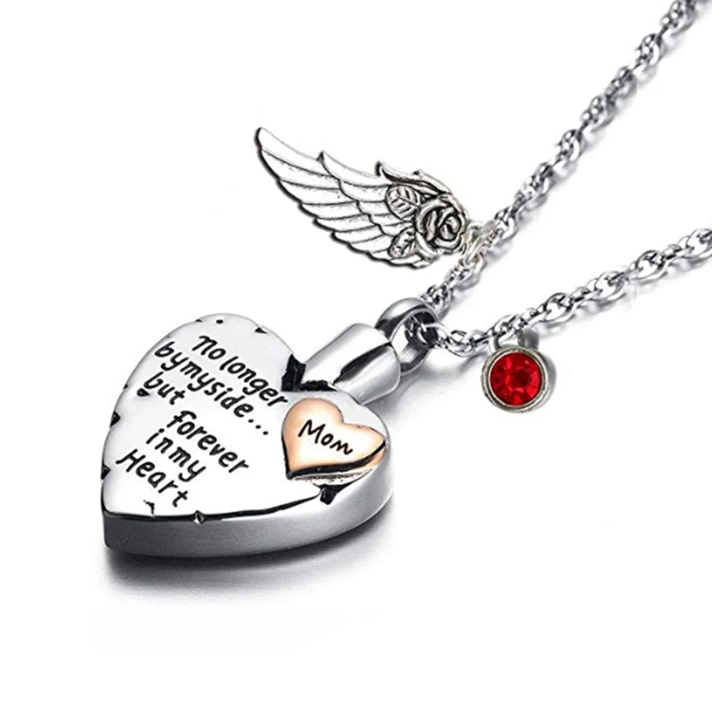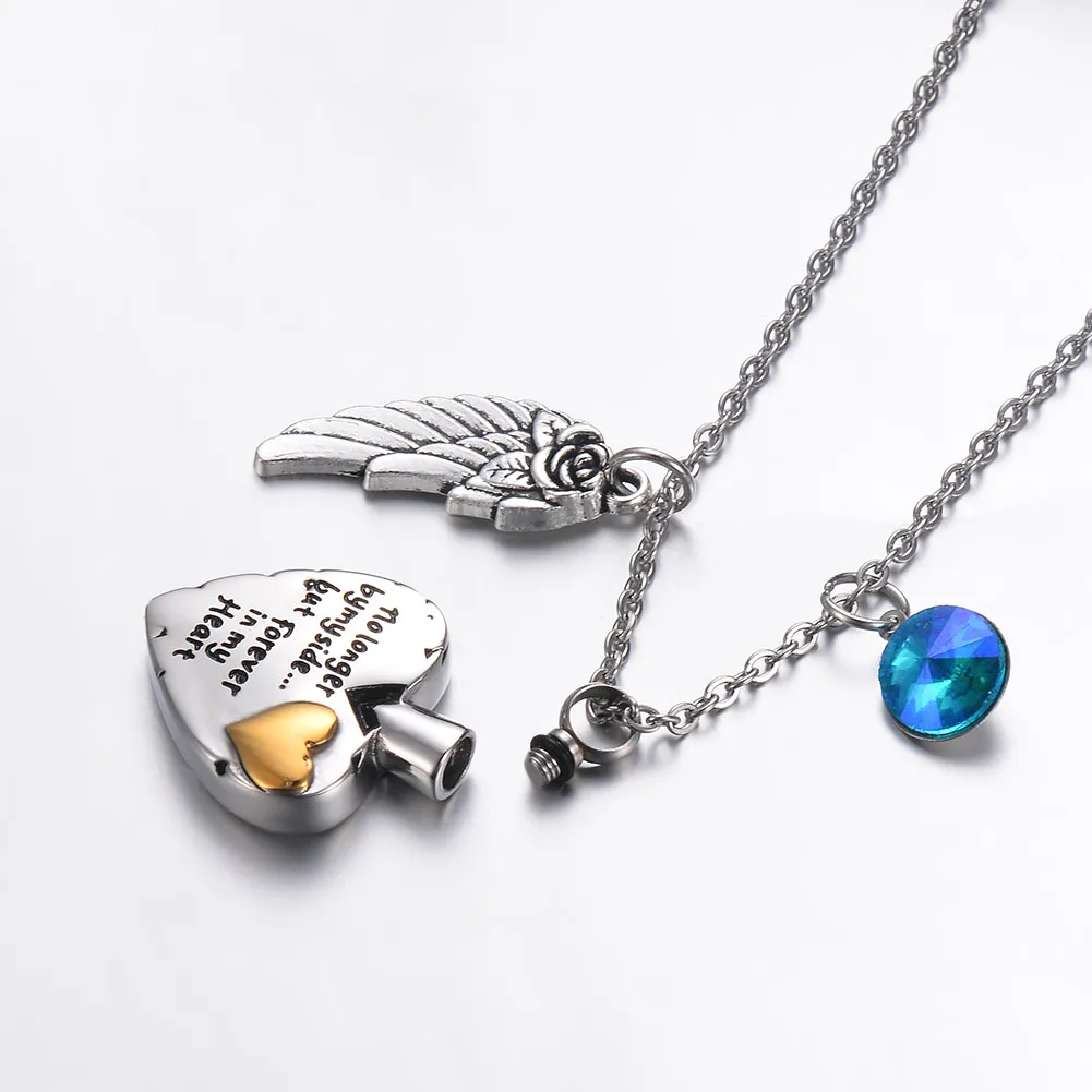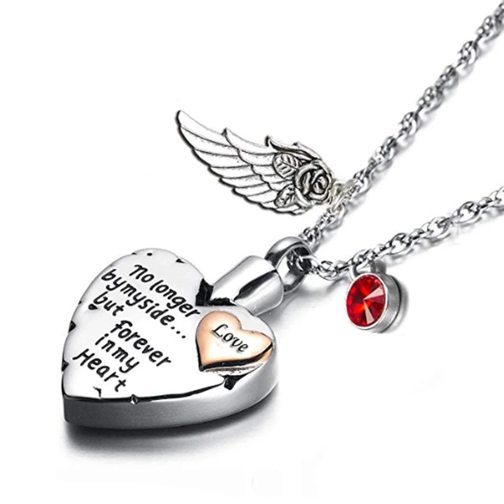 Сердечко кремация урна ожерелье для праха Крыло ангела кулон ювелирные изделия и камни рождения больше не на моей стороне, но навсегда в моем сердце