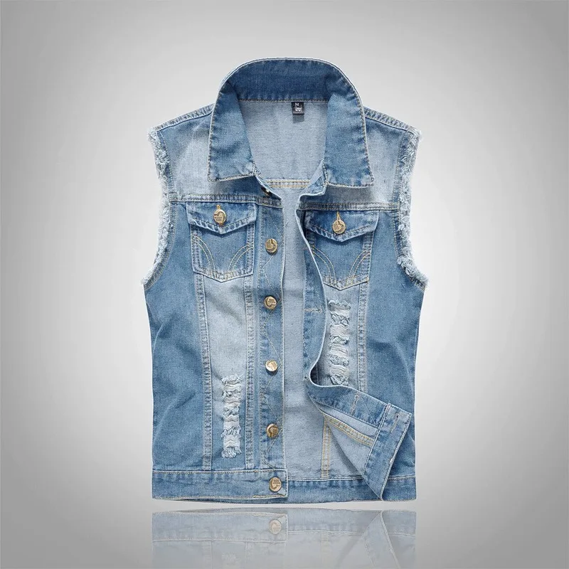Джинсовая куртка мужская, рваная, в стиле хип-хоп, без рукавов, 2021, 6XL, размера плюс