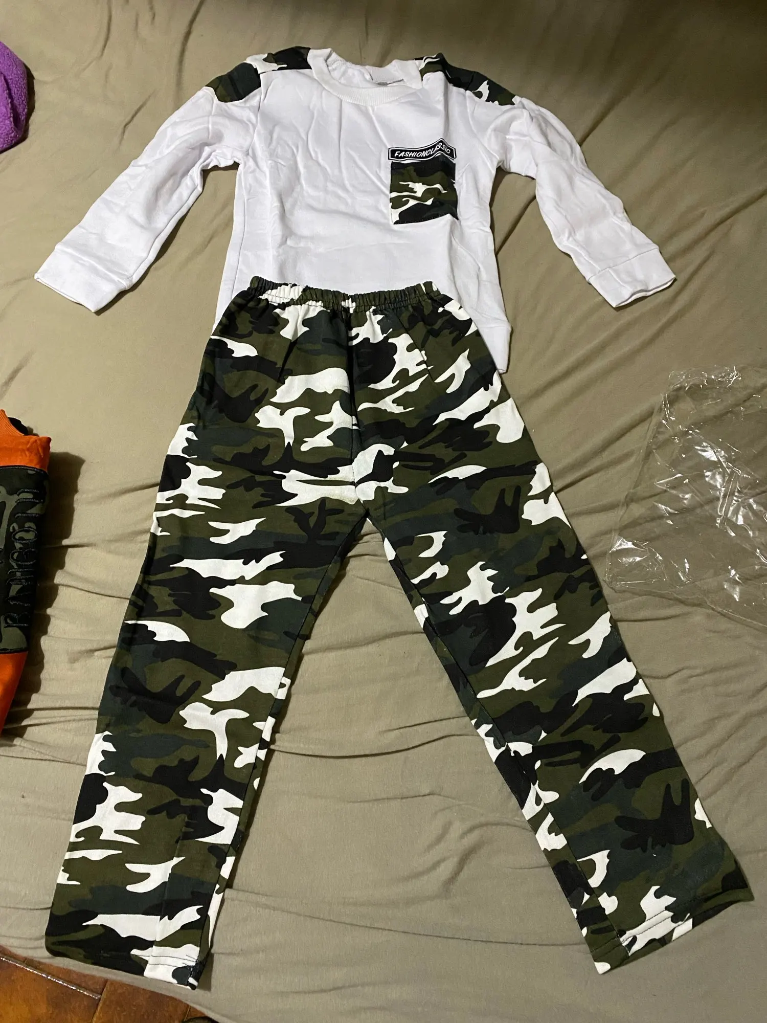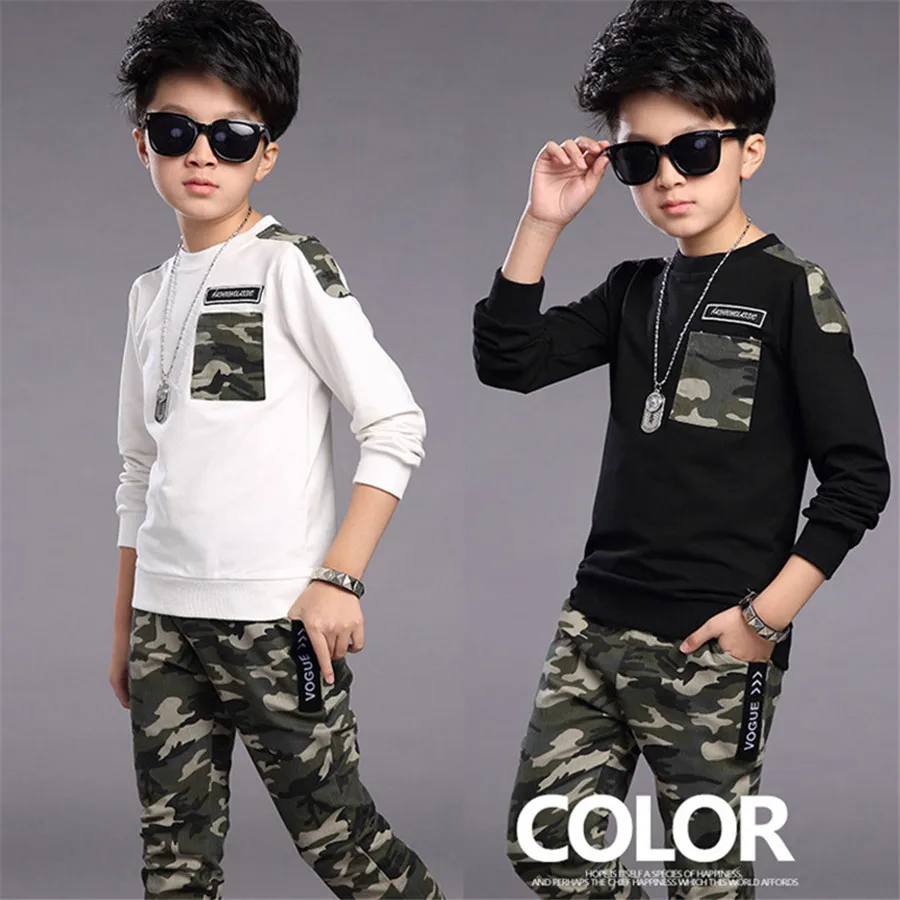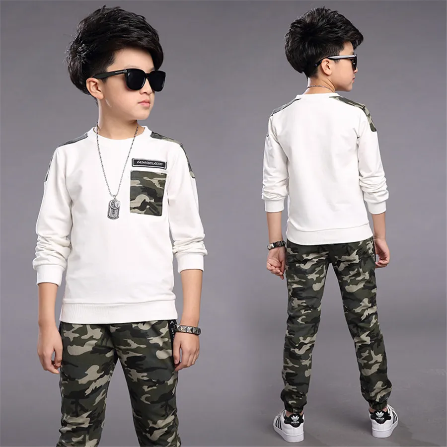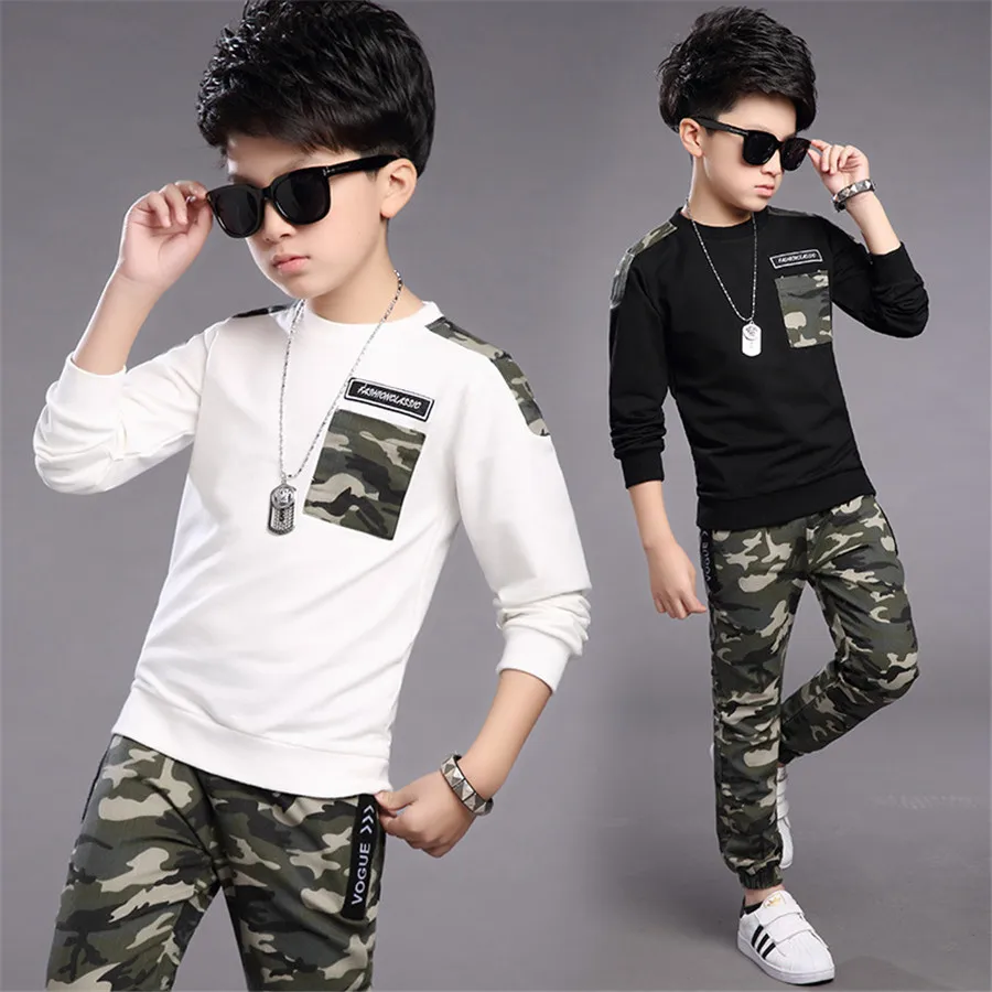 Спортивный костюм Одежда для мальчиков камуфляжные топы и штаны кос...