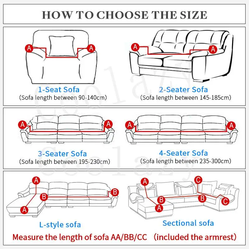 3-seaterЧехол для дивана подходит для большинства диванов длиной до 190-230 см/75-90 дюймов.