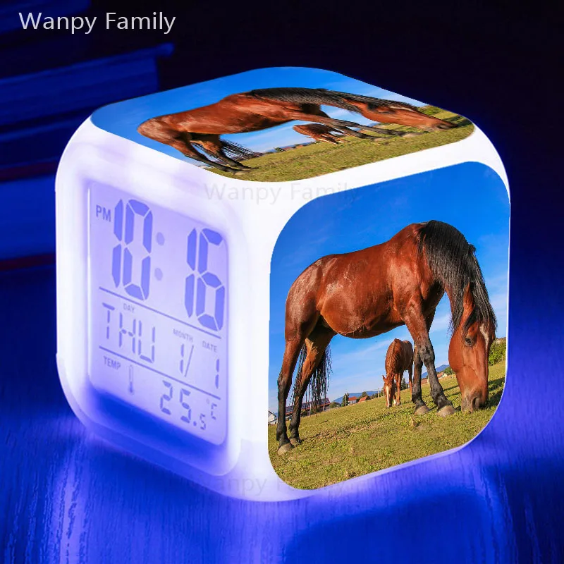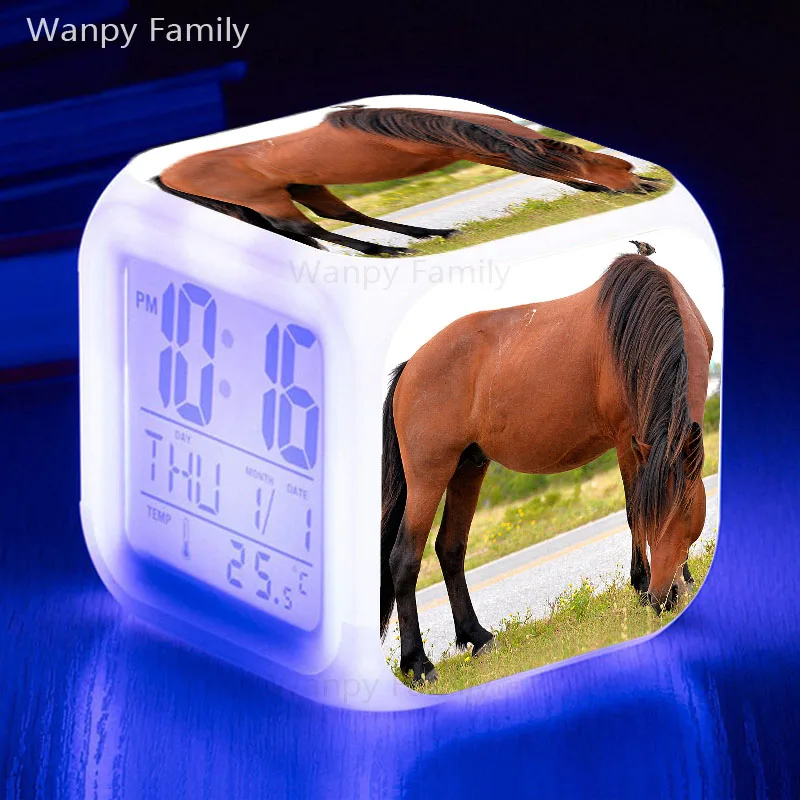Будильник с изображением лошади, 7 цветов, светящиеся светодиодные ...