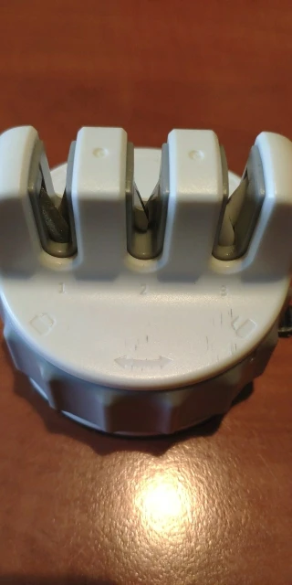 Просто бомба! Вже не мав сил з тими ножами, як якась каторга була, коли вони вже зовсім не хотіли різати. Вже думав якийсь дорогий камінь взяти, чи на наждачках точити. Але вирішив взяти цей девайс (вже маю добру жменю xiaomі девайсів вдома, тому довіра є). Точить класно і швидко. Перший відсік - для зовсім вбитих ножів для первинної підготовки, якщо не різали цвяхи - можна пропускати. Другий - нормально заточує, але агресивно, аж металеві дрібки йдуть. Фактично, третій відсік - це те, чим ви будете користуватися постійно. Ніж лізе в хліб, картоплю, м'ясо - як в масло, нічого не заминає. Просто періодично кілька разів легко провожу по третій секції і ніж - як новий!