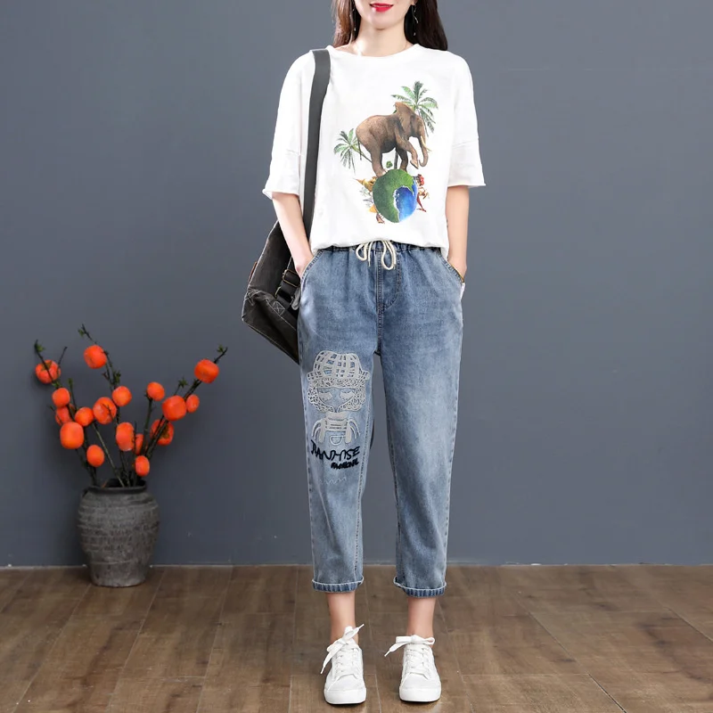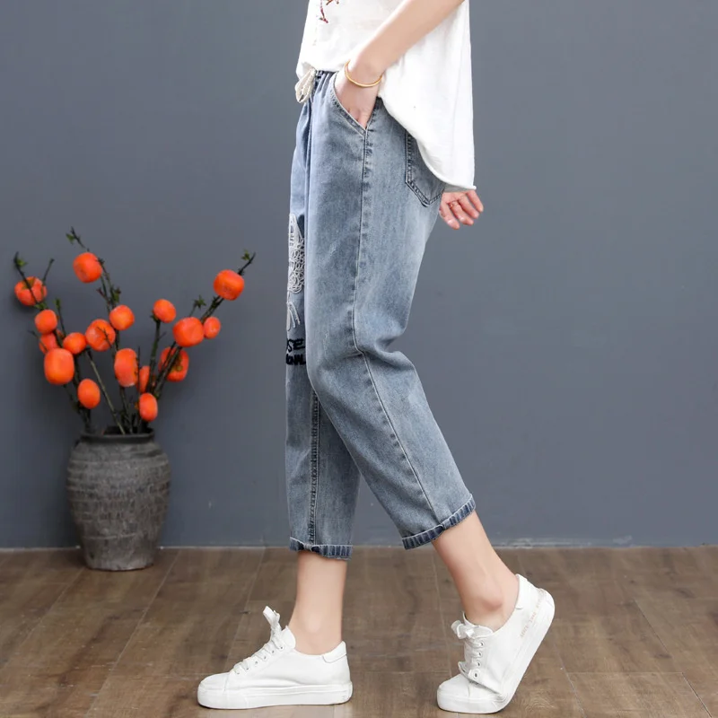 Джинсы женские Max LuLu, летние рваные, с вышивкой, эластичные, 2020