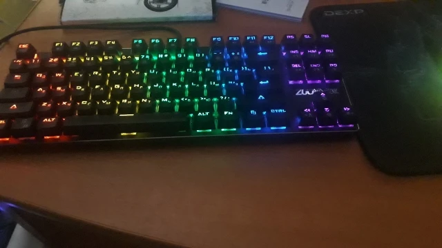 клавиатура шикарна, свитч тоже, клавиатура немного громковата по сравнению с дешёвой клавой за 500р, но это ничего. светится круто. режимов свечения очень много. я боялась что сбоку она будет слишком яркая, но нет, она идеальна и работает просто супер. пришла очень быстро, буквально за 9 дней
