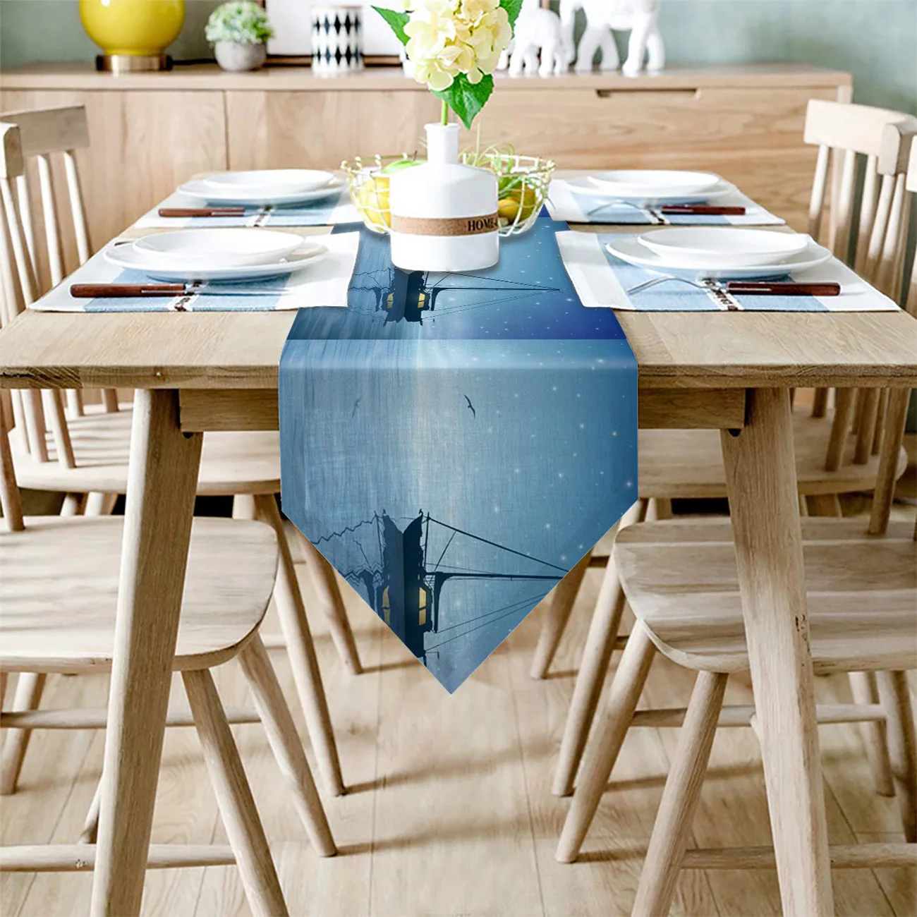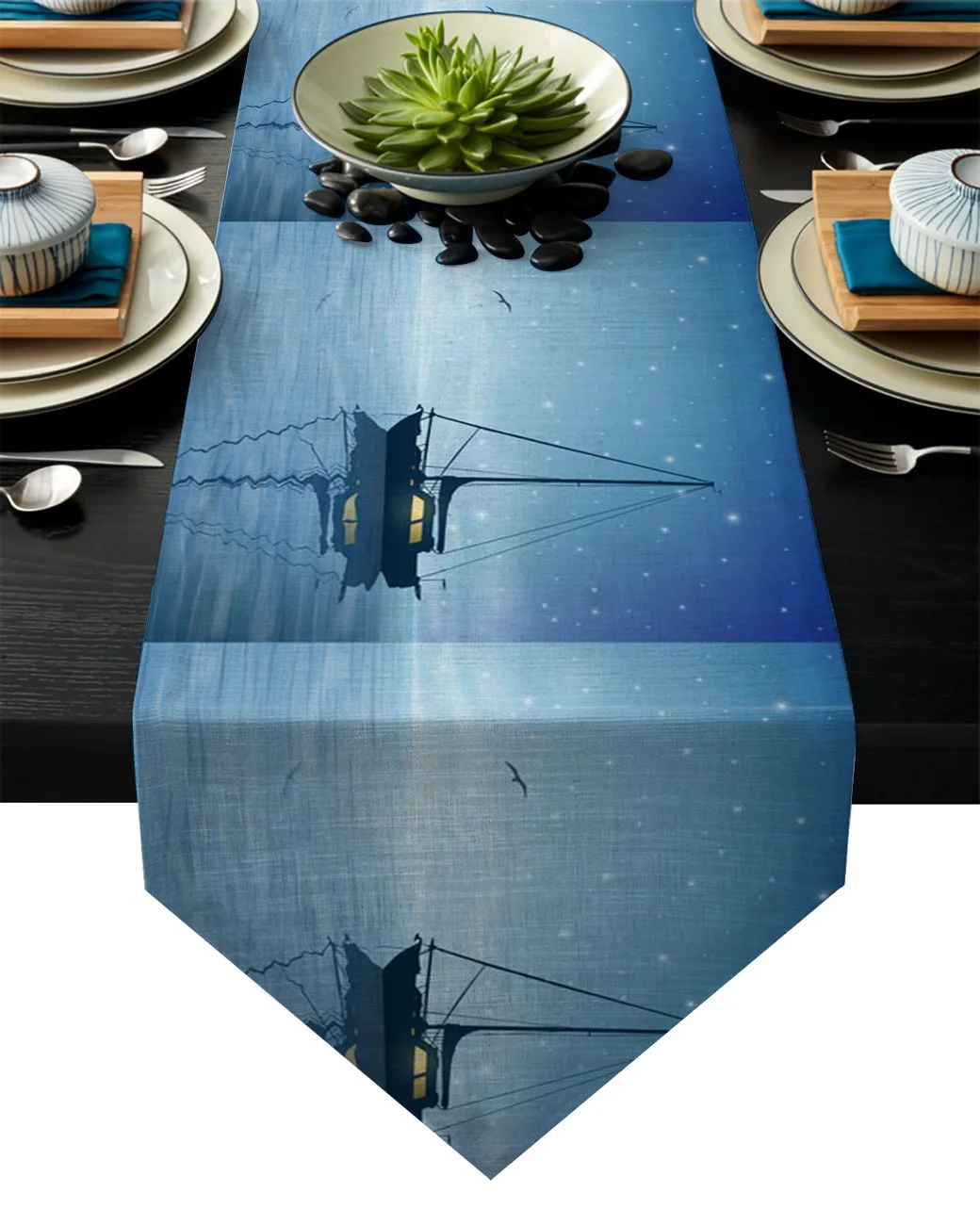 Парусная лодка ночное небо море настольная дорожка Флаг украшения для домашней вечеринки скатерть настольная дорожка s