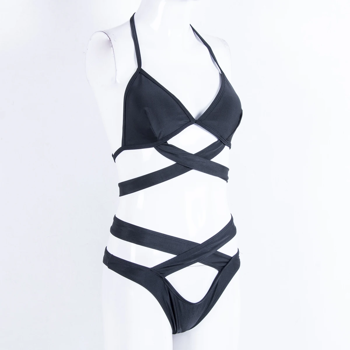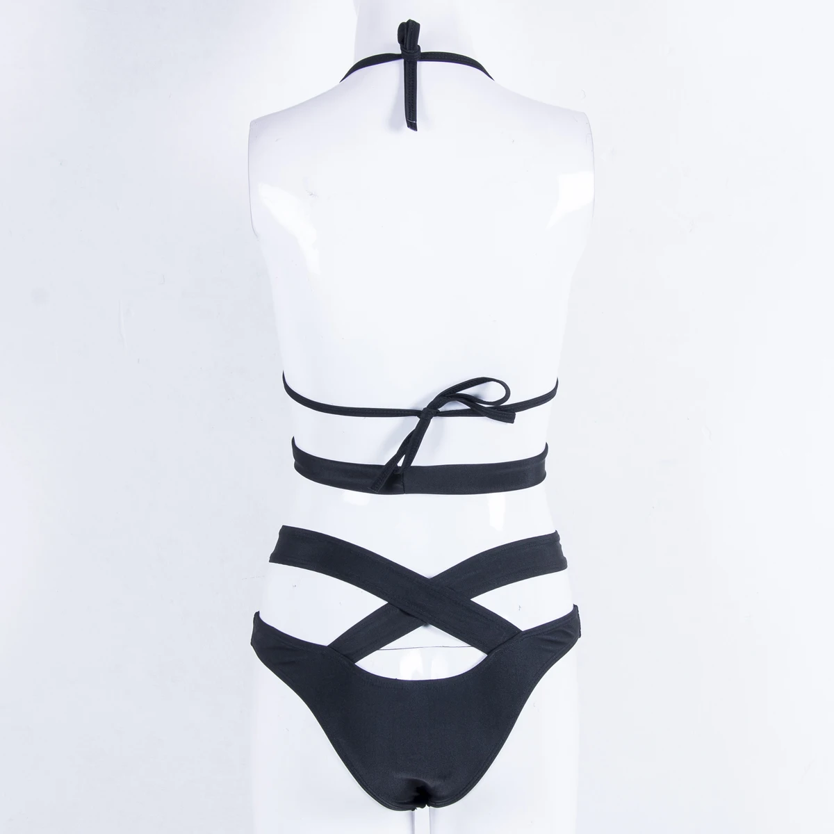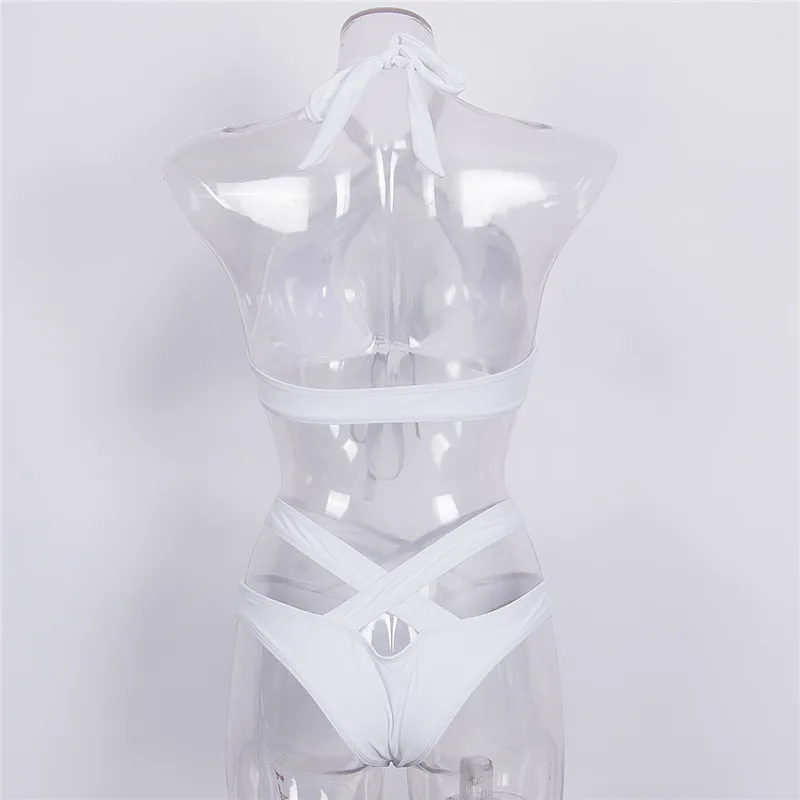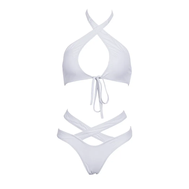 Купальник женский из двух частей, пикантный черныйбелый однотонный бикини, перекрещивающийся через шею, купальник, пляжная одежда, 2020