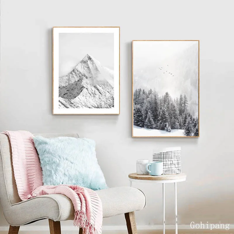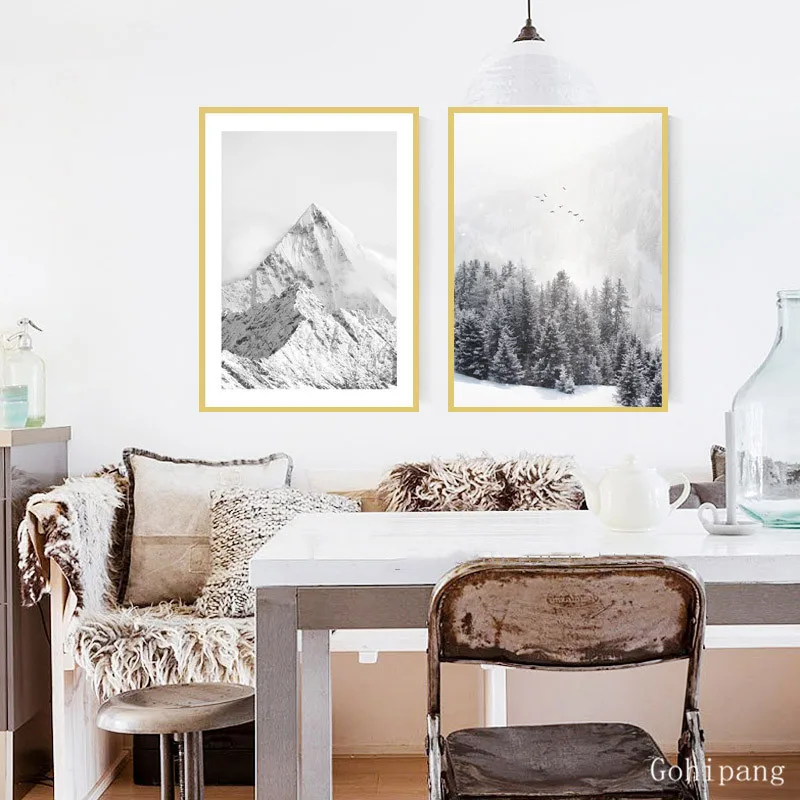 Черно-белая Скандинавская картина со льдом, снегом, гор, абстрактный пейзаж, искусство на стену, домашний декор, модульные картины