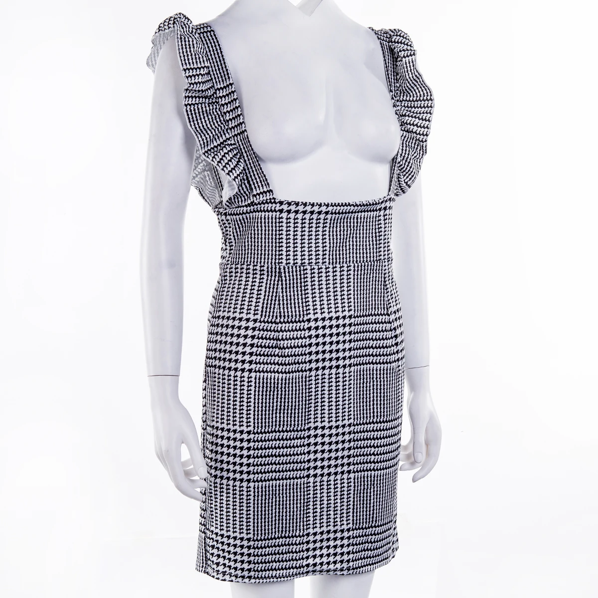 Новое поступление, повседневное женское облегающее платье в клетку без рукавов с оборками, оборками и оборками, облегающее мини-платье