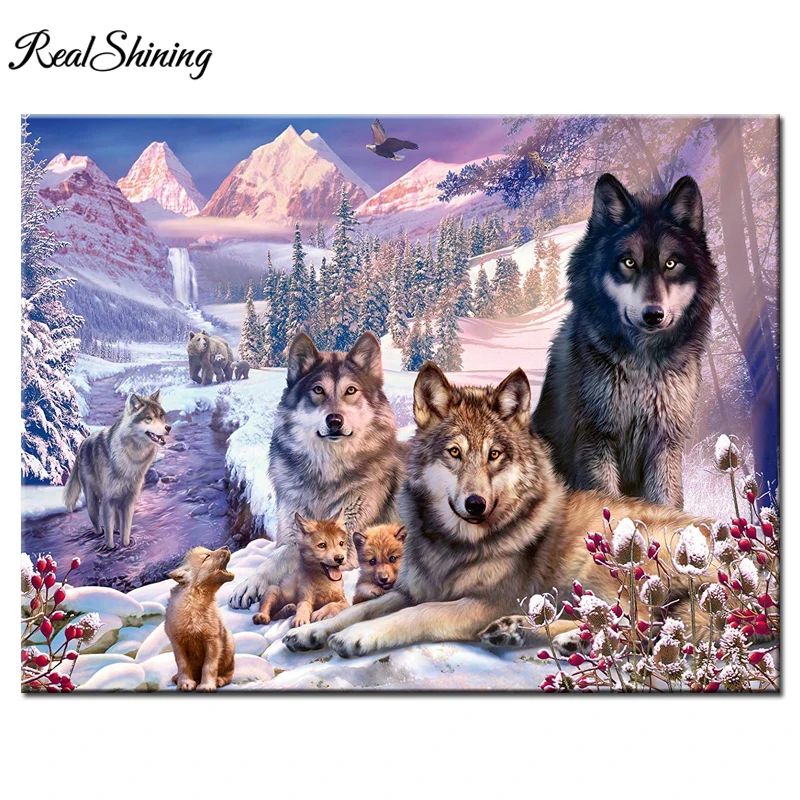 Diy Алмазная мозаикаВолкАлмазная живопись, полная квадратная/круглая Алмазная вышивка, Рождественский пейзаж Z0072