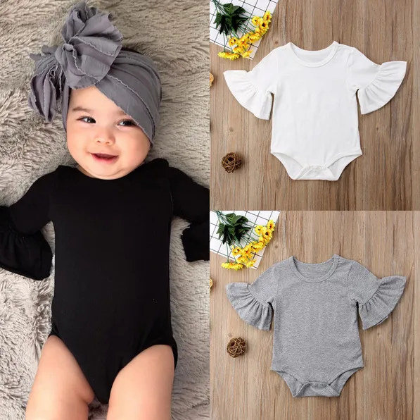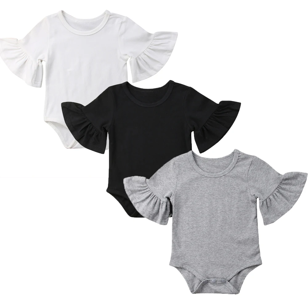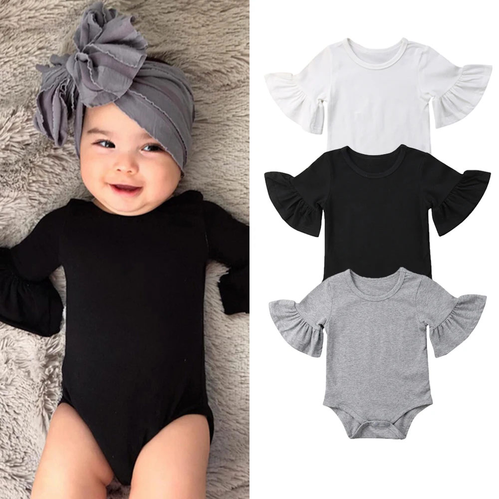 Размер от 0 до 24 месяцев, Одежда для новорожденных и для маленьких девочек с расклешенными рукавами однотонные Цвет хлопковый комбинезон, спортивный костюм, детская одежда
