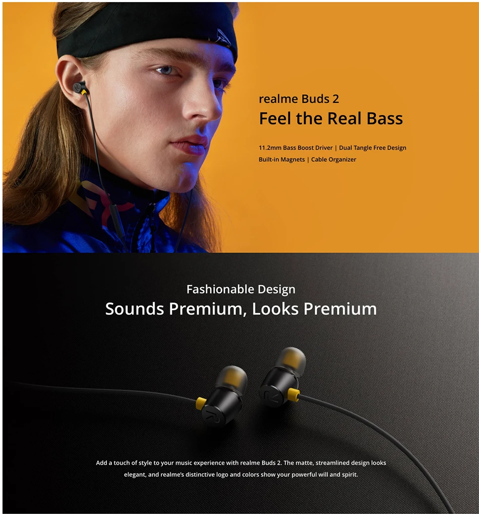OPPO realme buds 2 Наушники встроенный Magnes 11,2 мм усилитель басов двойной спутанный дизайн для realme x x2 x2 pro 3