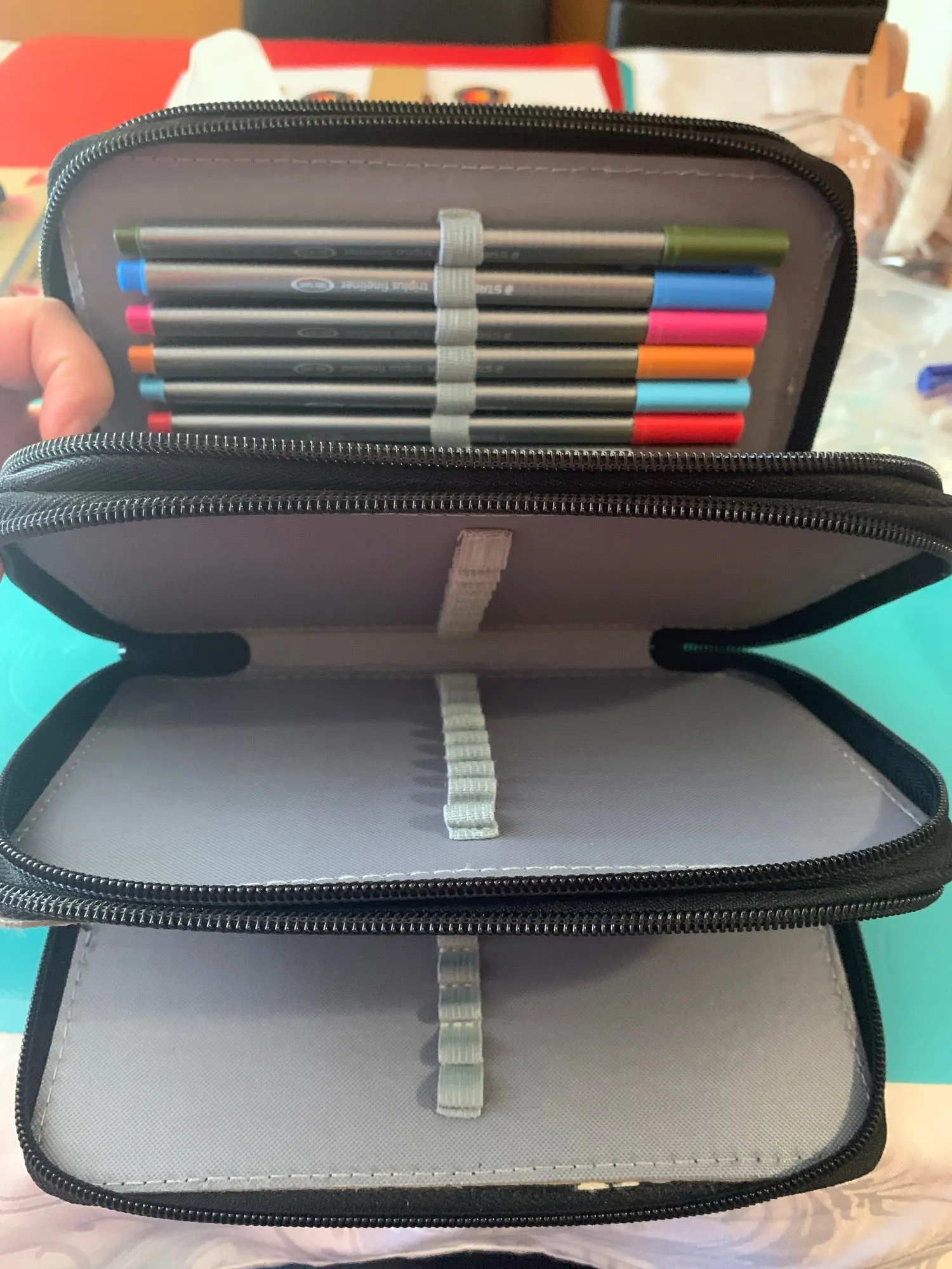 Очень хорошо, как в описании. Единственная заметная деталь в том, что пространства узкие, поэтому, если вы положите жирные маркеры, их трудно надеть, но кроме этого все в порядке.