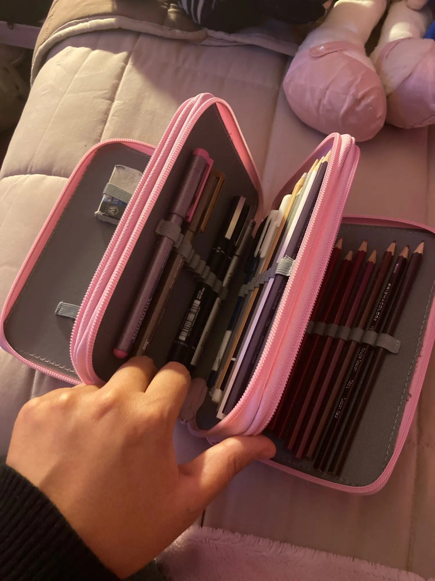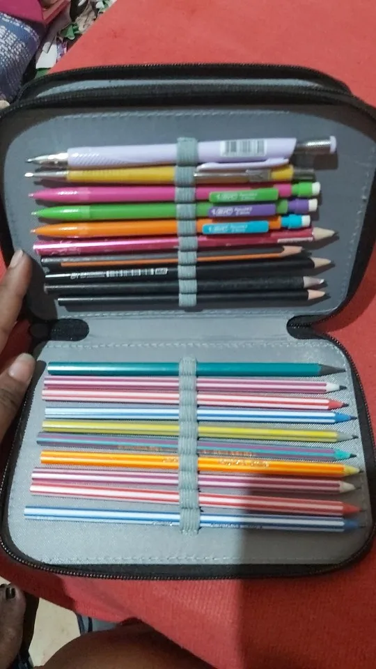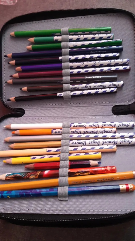 Solo se pueden poner lápices delgados para que quede bien, de otra manera se deforma un poco. Igual es un buen producto
