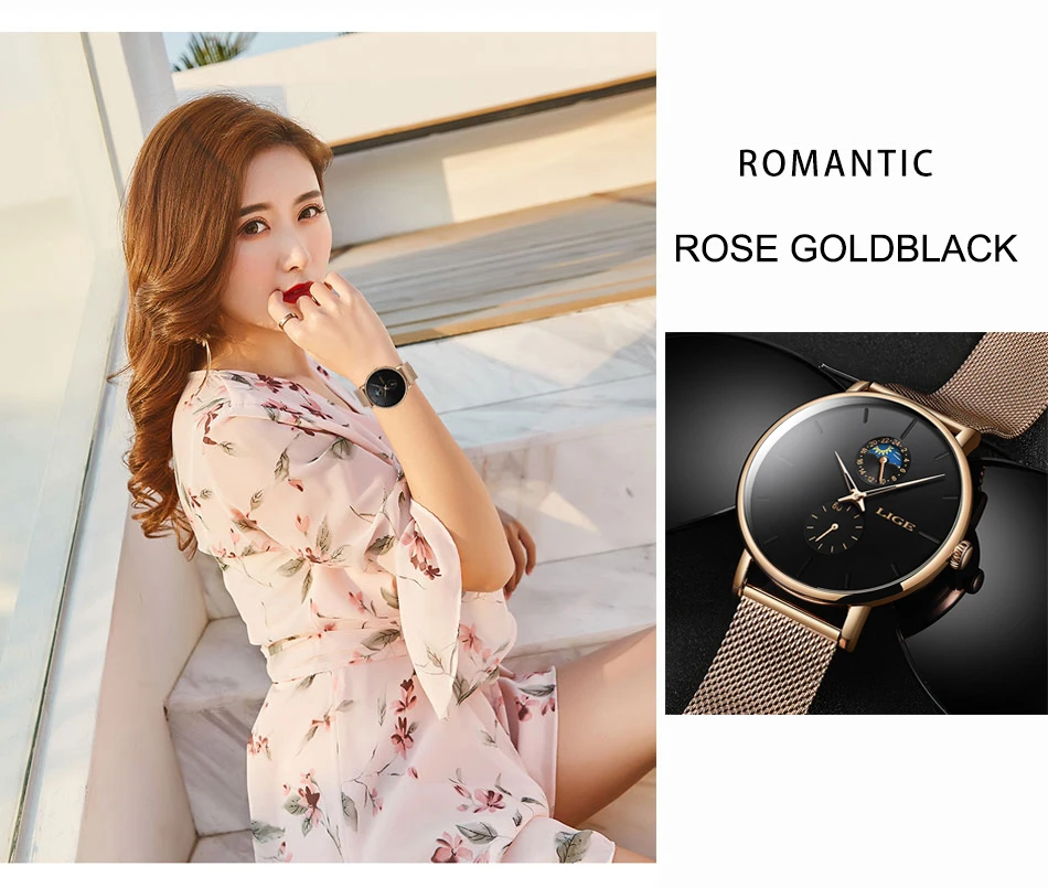 Часы наручные LIGE женские с сетчатым браслетом, роскошные модные п...