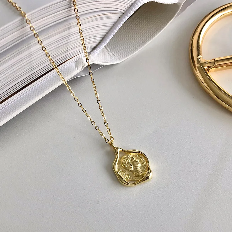 Женское ожерелье из серебра 925 пробы, с резной монеткой