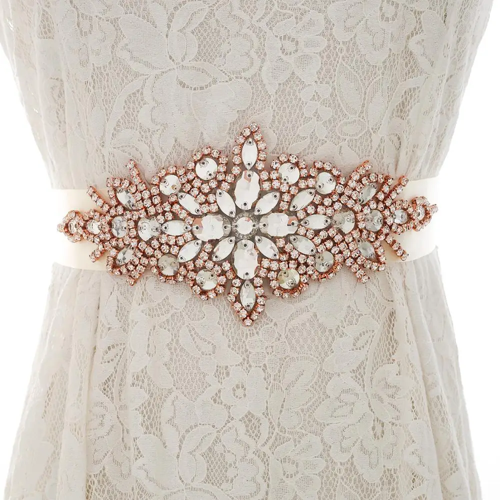Пояс с кристаллами для Стразы, под розовое золото, свадебный аксессуар 101RG