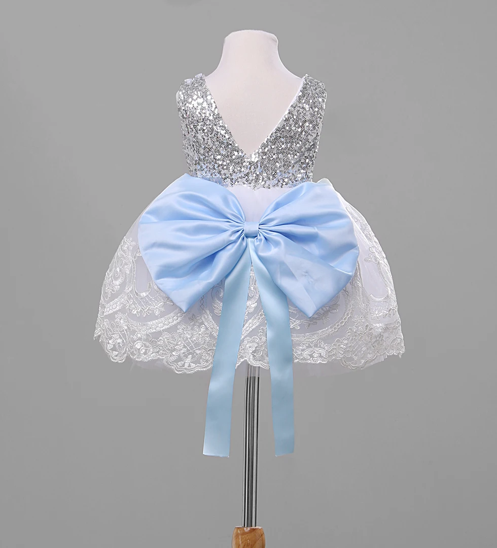 Платье детское кружевное с бантом, без рукавов, с блестками, на воз...