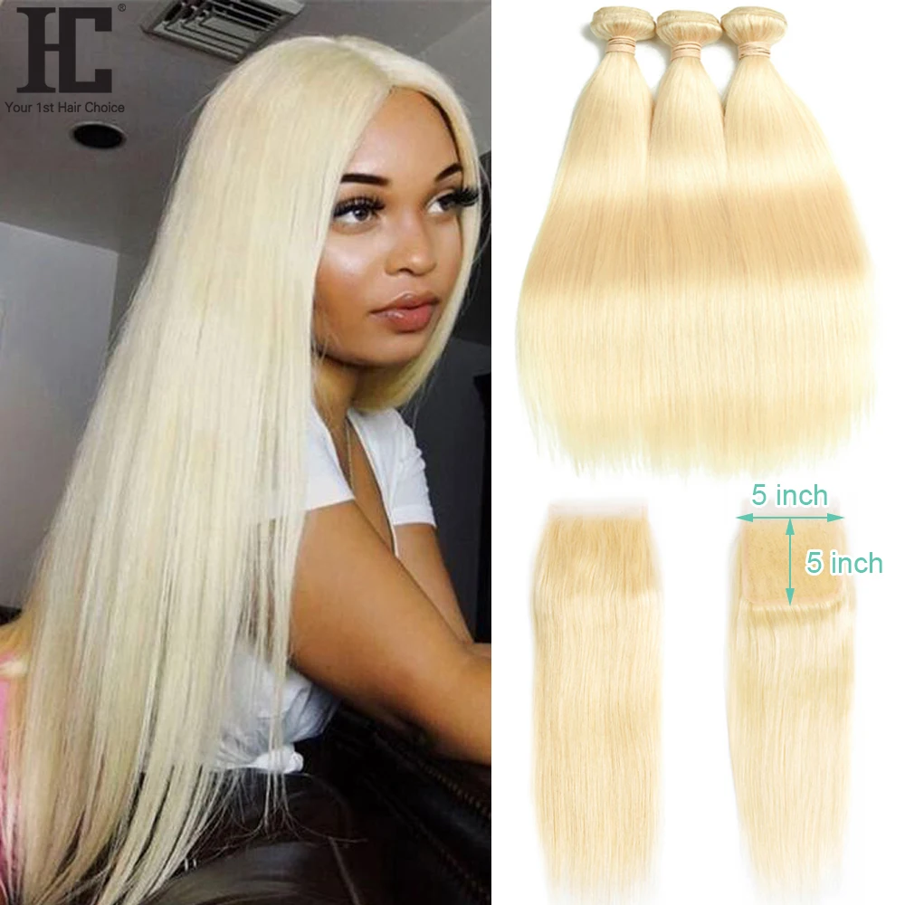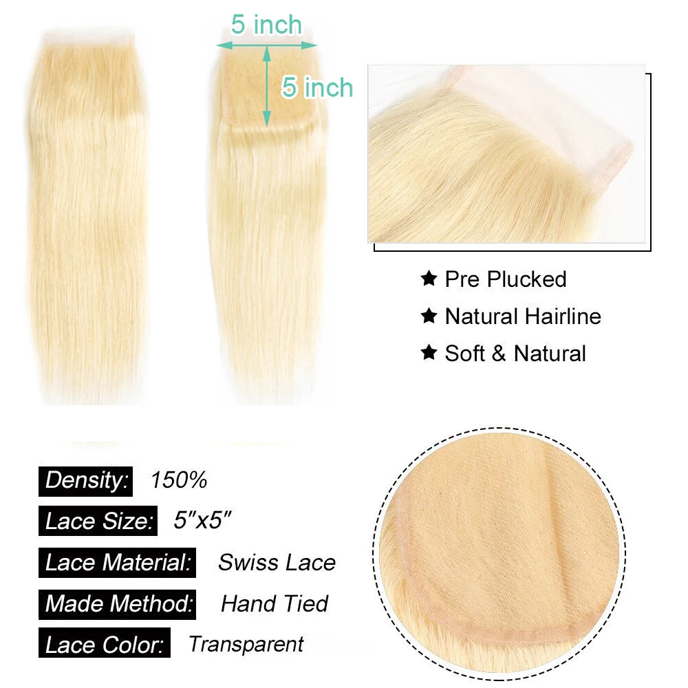 Пряди блонд с застежкой 5x5, бразильские прямые человеческие волосы, волнистые, с застежкой, с 2 пряди чками и 3 пучками Реми, 613