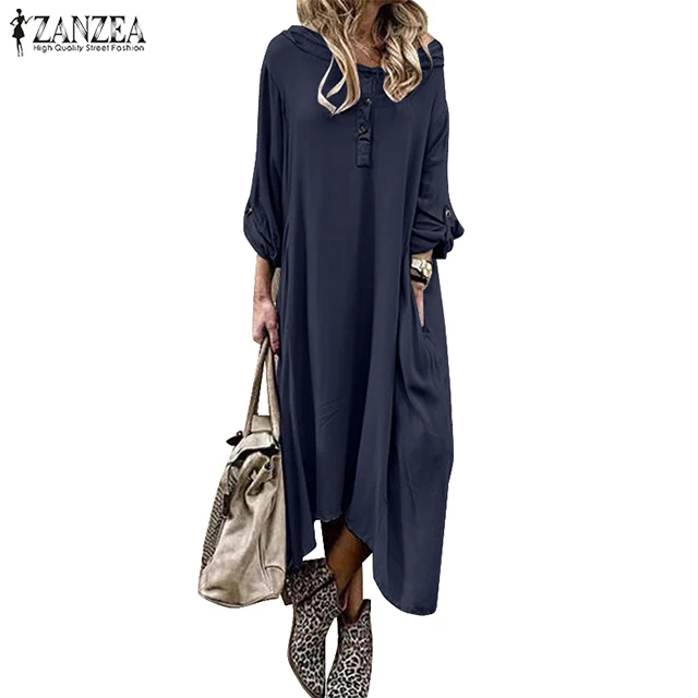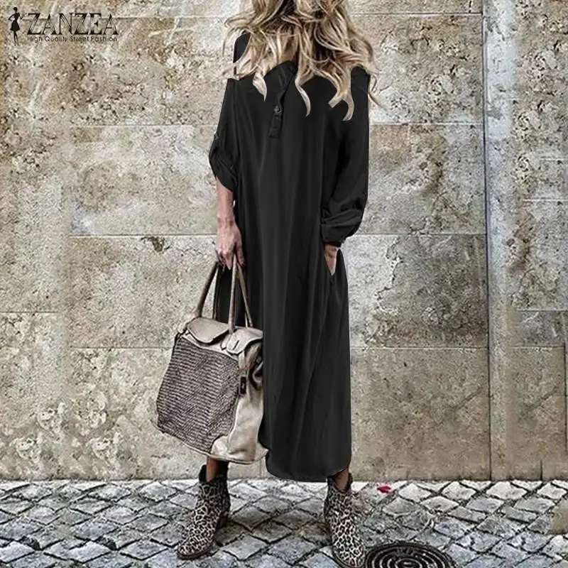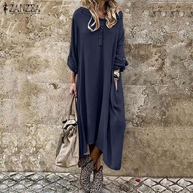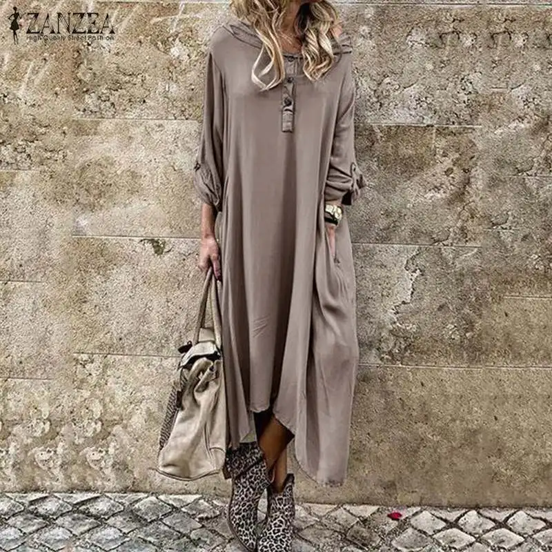 Элегантное однотонное платье-макси ZANZEA 2022, женский весенний са...