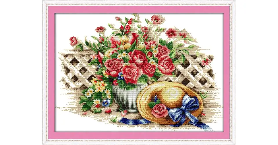 Милый цветок шляпа вышивка крестиком набор Aida14ct 11ct печатная ткань вышивка набор DMC Вышивка крестом ремесла Домашнее украшение