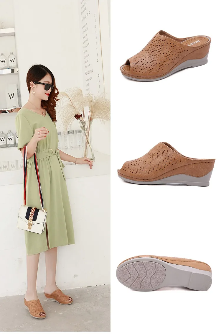 Новинка 2021 года; Женские шлепанцы на танкетке; Сланцы из искусств...
