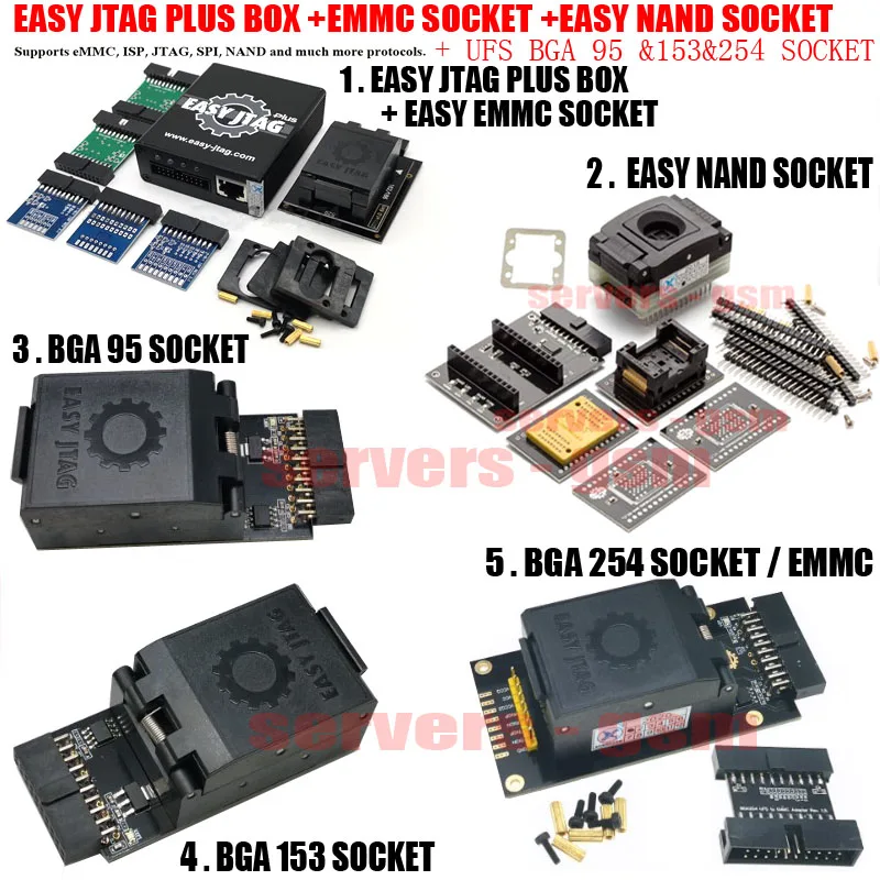Новинка 2022 г., Easy-JTAG plus box + EMMC socket + EASY NAND sockeet + UFS BGA 95 socket + UFS BGA 153 socket + Easyjtag UFS BGA-254 Socket EM