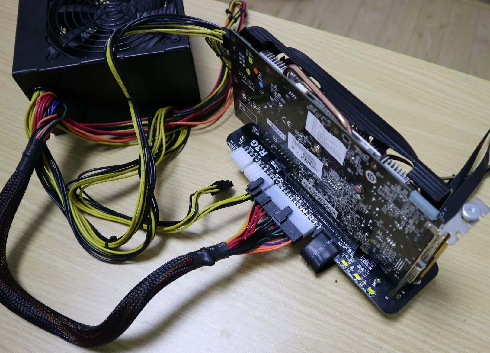 Способ подключения источника питания ATX следующим образом: (рекомендуется поставить мощность ATX более 400 Вт). Шнур питания корпуса питания непосредственно вставляется в видеокарту.