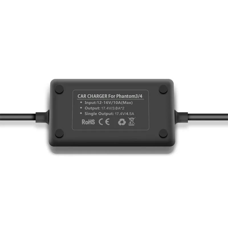 Характеристики: Вход: 12-16,0 В/10 А выход: 17,4 в 6А (4.5A при зарядке 1 батареи, 3A * 2 при зарядке 2 батареи) Полная защита: Перенапряжение, перегрузка по току, перезарядка, перегрев, перезагрузка, защита от короткого замыкания Время зарядки: одна батарея около 70 минут, 2 батареи около 100 минут длина кабеля: 36 дюймов Упаковка включает: 1 * Автомобильное зарядное устройство серии DJI Phantom 4 (батарея и передатчик в комплект не входят) 1 * Руководство пользователя