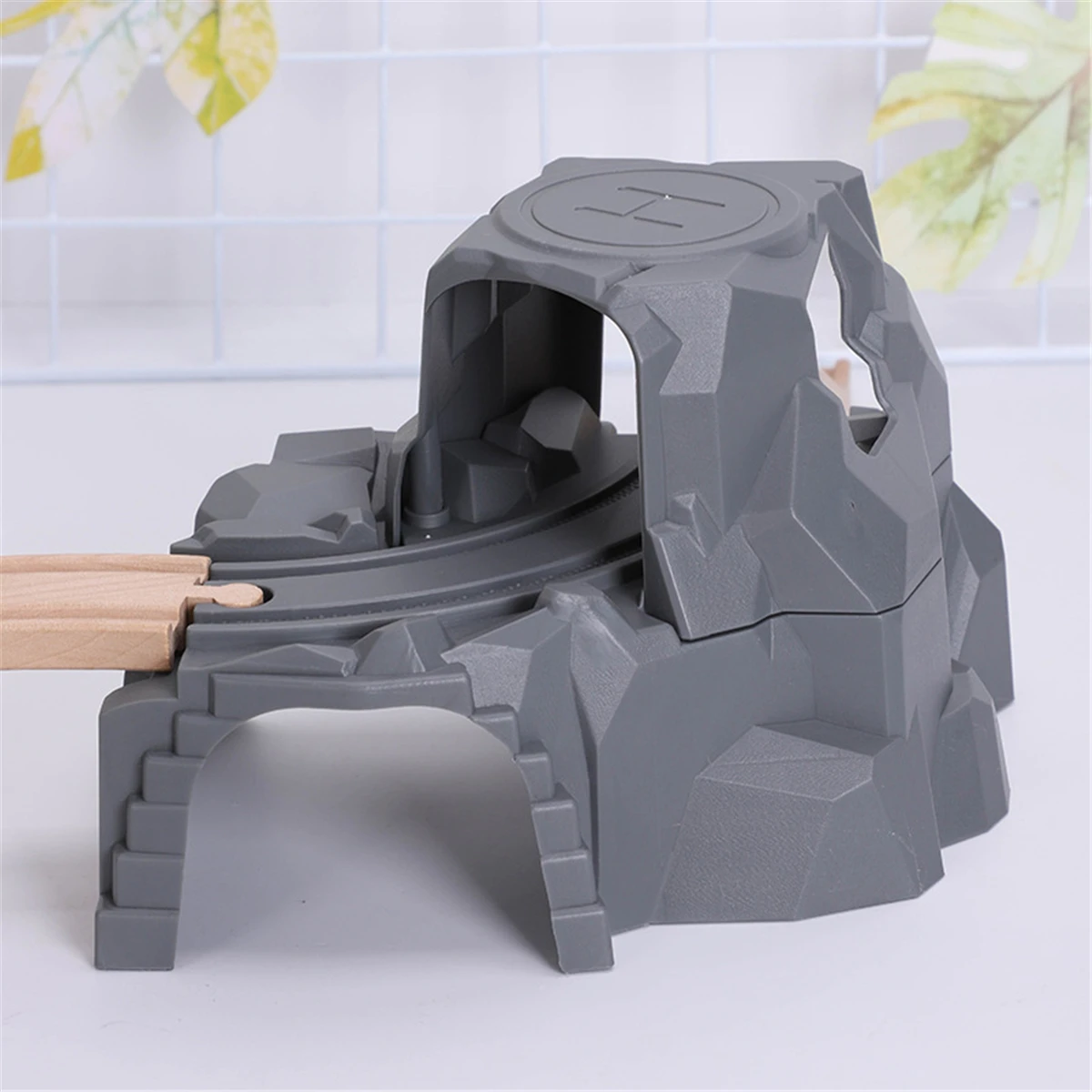 Пластиковый серый двойной туннель, деревянные аксессуары для железнодорожных путей, туннель, железная дорога, деревянные игрушки, конструкторы