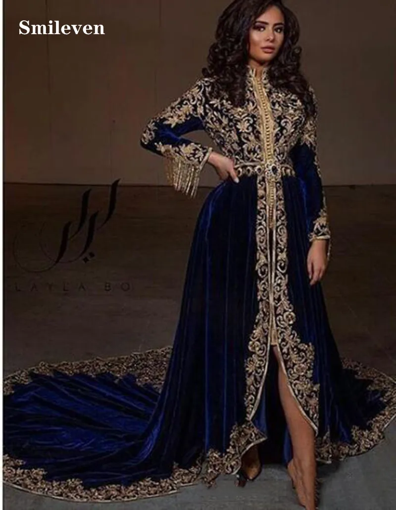 Smileven фиолетовые вельветовые кафтан арабские вечерние платья сек...