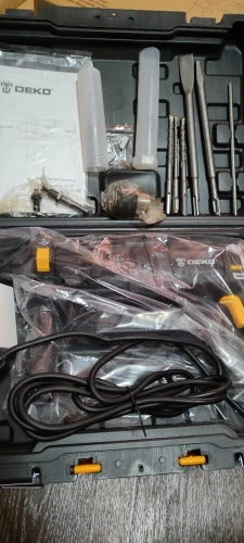 заказ прибил за 9 дней, всё целое, перф упакован в пластиковый кейс, в наборе лопатка, бур, 3 сверла на 6мм, 8мм и 10мм, ограничитель глубины сверления, переходник на обычные свёрла под дрель, 2 щетки целые. Провод длинный 3м с защитой от излома. Перф мощный кирпич сверлит отлично, покупкой доволен, со всеми скидками, вышел около 4т.р.